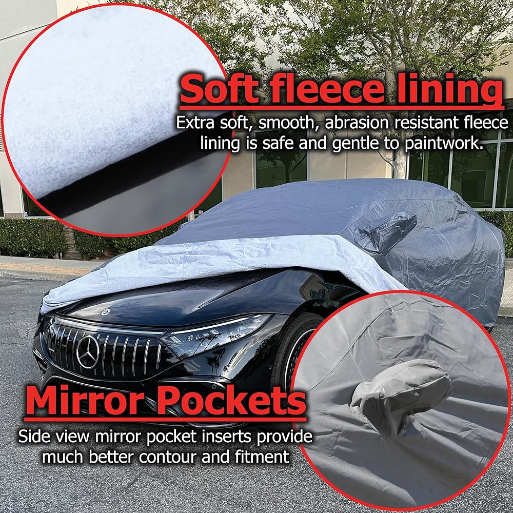 Black Fabric with Double Black Stitching: Beautiful black with Black stitching car cover makes your car like in a show room vehicle