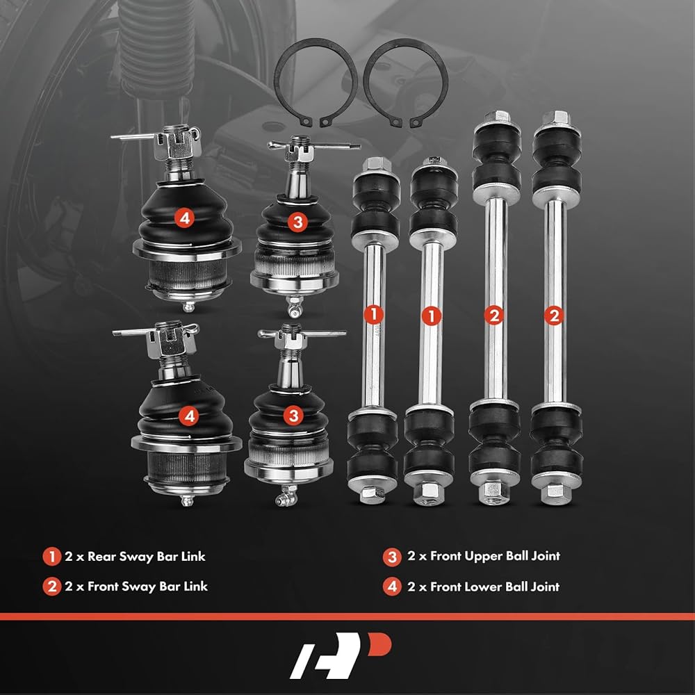 مجموعة A-Premium المكونة من 8 ، رابط شريط التأثير الأمامي والخلفي ، مفصل الكرة العلوي والسفلي ، متوافق مع فورد إكسبلورر 2006-2010 ، Explorer Sport Trac 2007-2010 ، Mercury Mountainder 2006-2010