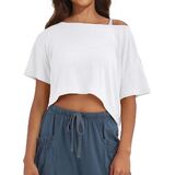 قمم محصول Camo Tirt: تم عرض كامو قبالة الكتف على طول محصوقي ، نوبة كبيرة ، خط قارب ، غلاف قصير ، رقبة غير متناظرة ، مطبوعات رسومية من أوراق القيقب ، ملائمة فضفاضة ، قمصان صيد ، ملابس رياضية ، أعلى محصول الصالة الرياضية ، تمرينات التمرينات