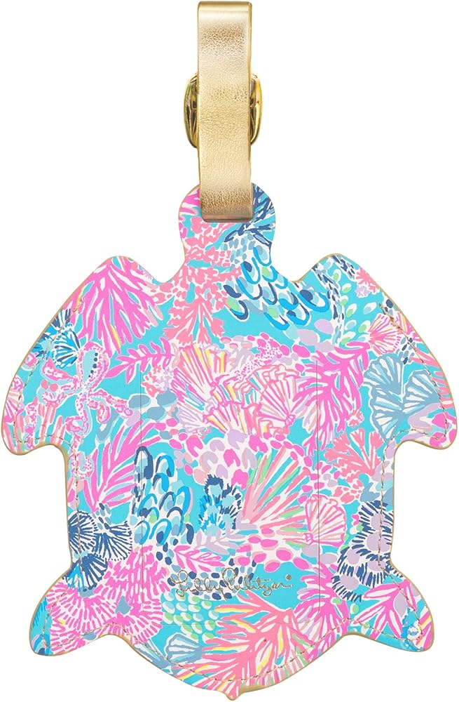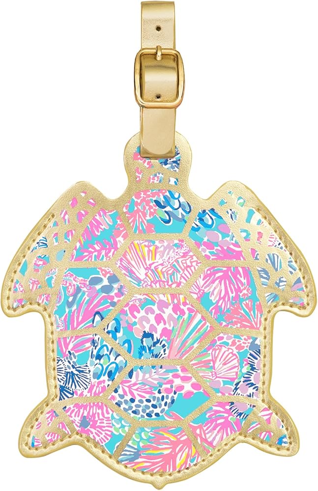علامة الأمتعة على شكل سلحفاة من ليلي بوليتزر مع حزام آمن، جلد نباتي متين، معرف حقيبة ملون للسفر، روعة في الرمال، مقاس صغير