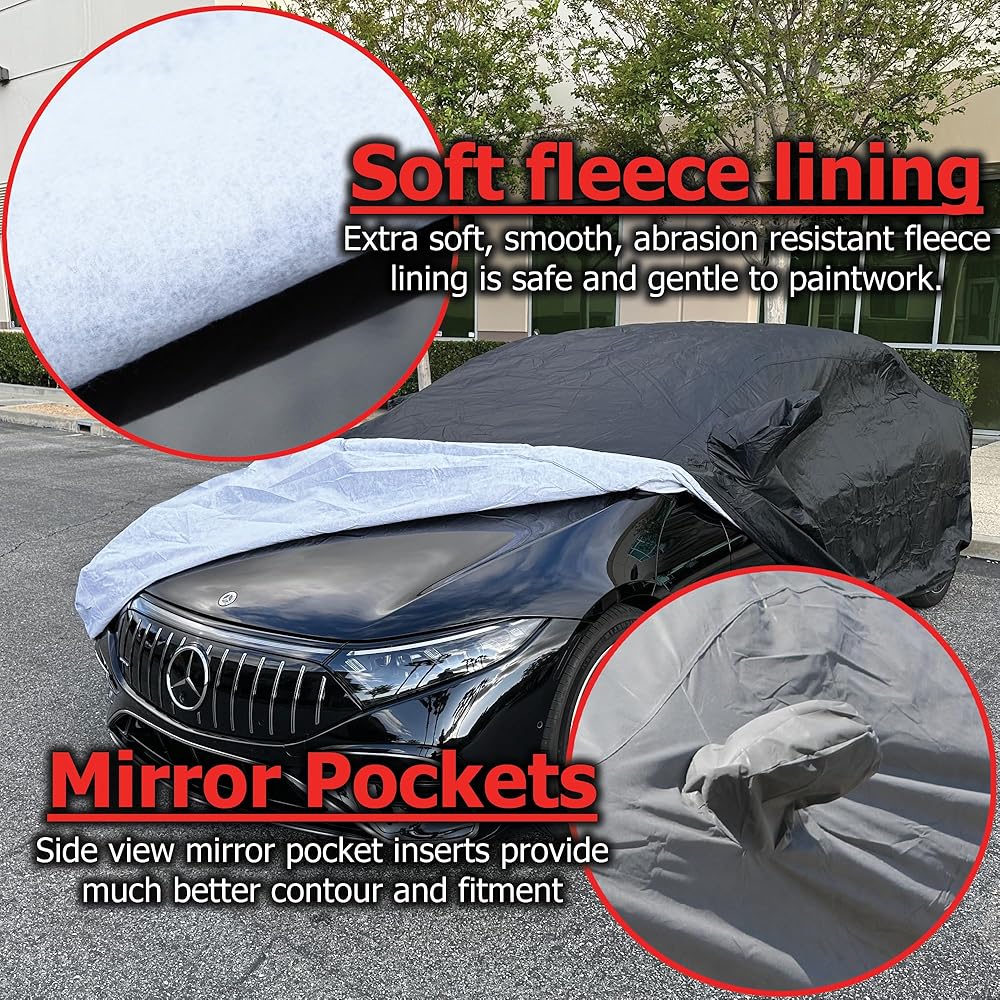 Double Stitching with 100% Nano-coated Waterproof Seams provides true 100% waterproof and all weather protection for your vehicle.