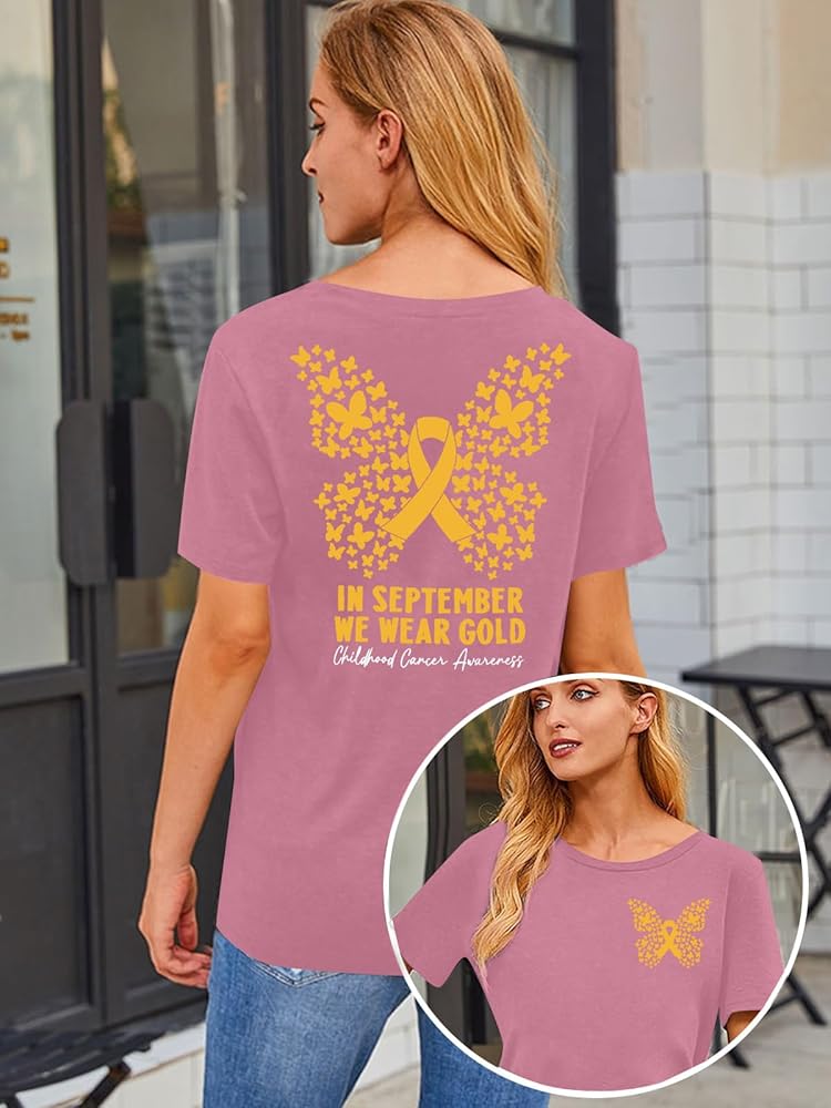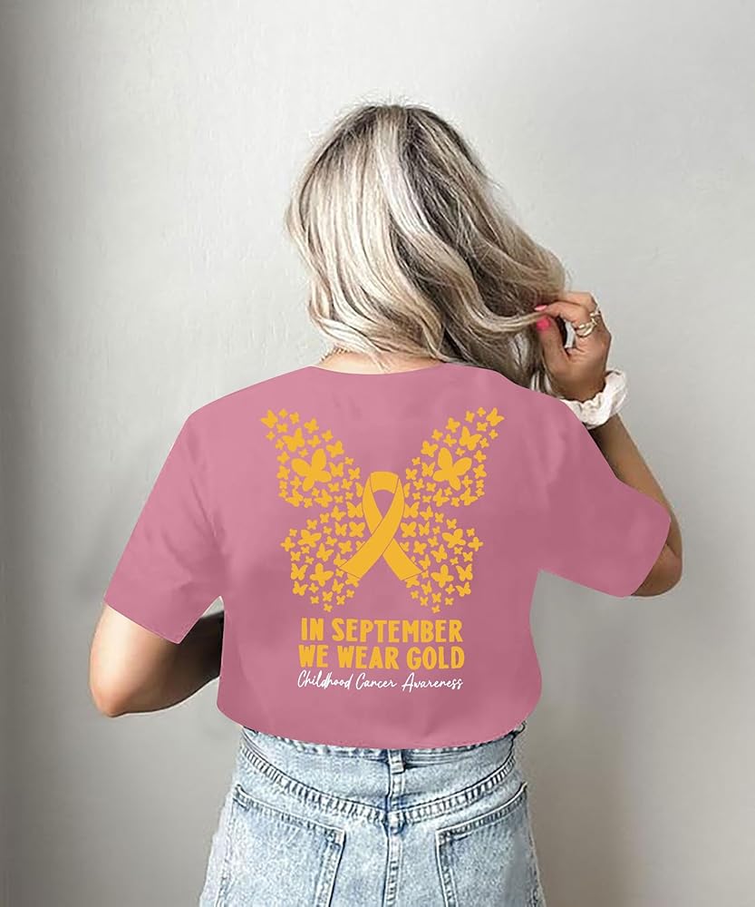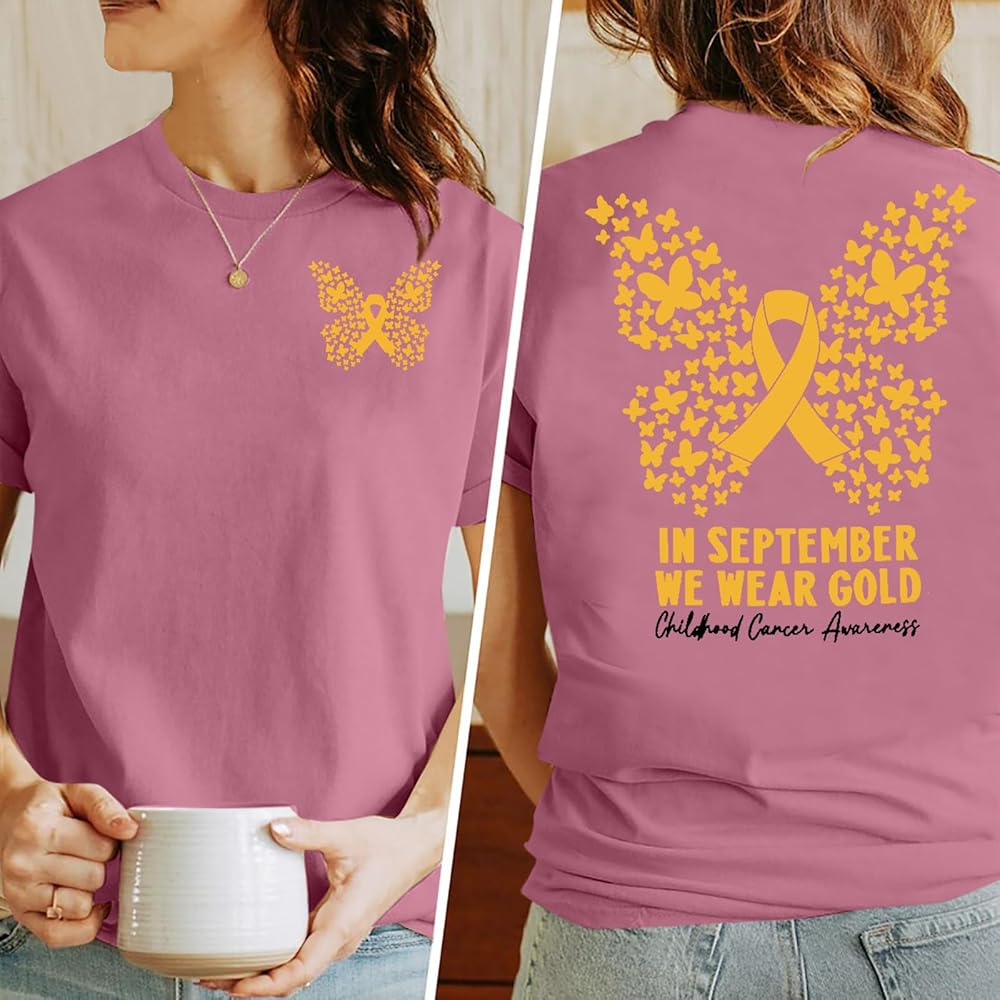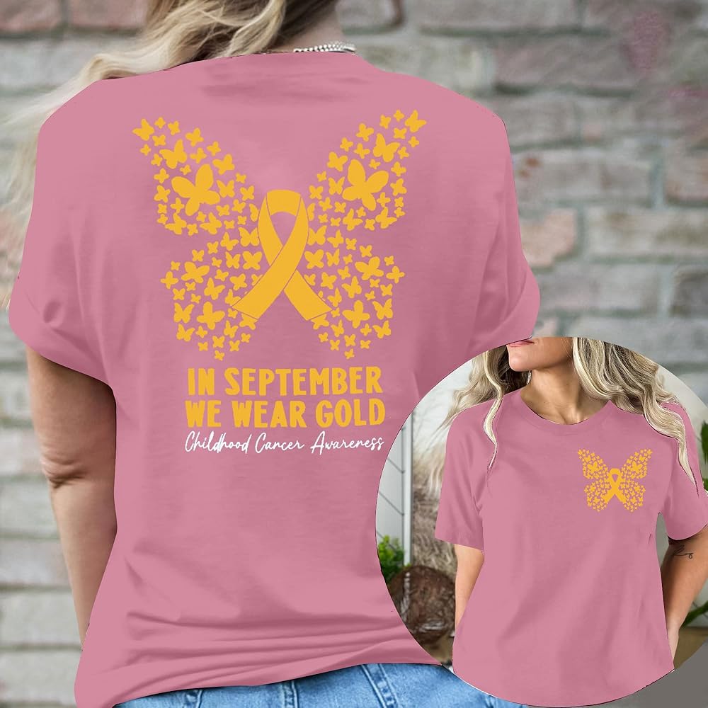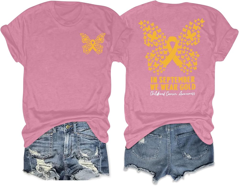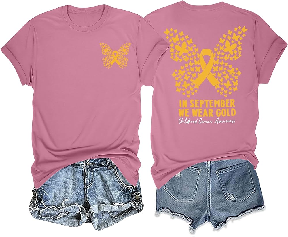 • المباراة: في سبتمبر / أيلول ، نرتدي قميص شريط التوعية بسرطان الطفولة الذهبية هو خيار جيد لتتناسب مع بنطلونك ، وسراويلك السروال ، والأحذية ، والأحذية ، وما إلى ذلك. هذا قميص طباعة الفراشة ستجعلك أكثر عصرية وجذابة!