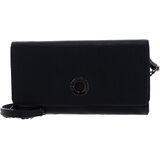 Large wallet with leather shoulder strap and removable chain.