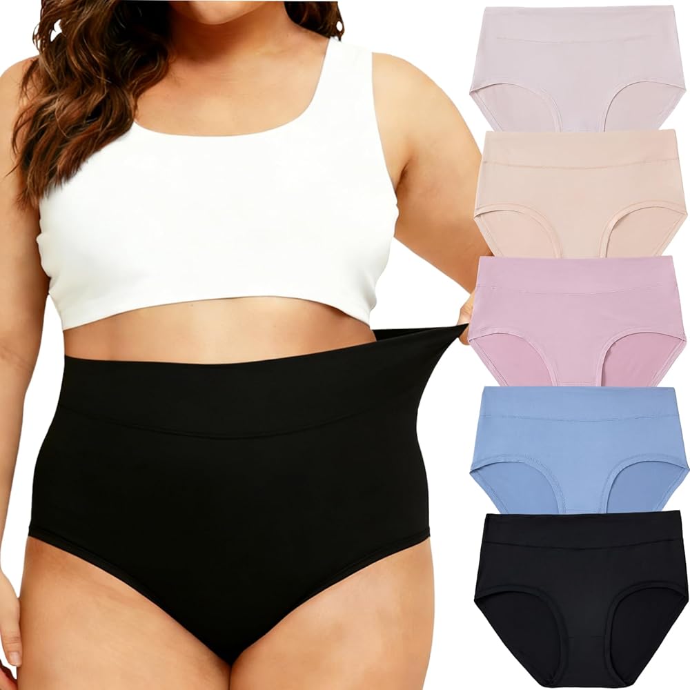 5 Pack plus size underwear for women high waisted, available in extended plus sizes with a stretchy waistband that adapts to your body shape