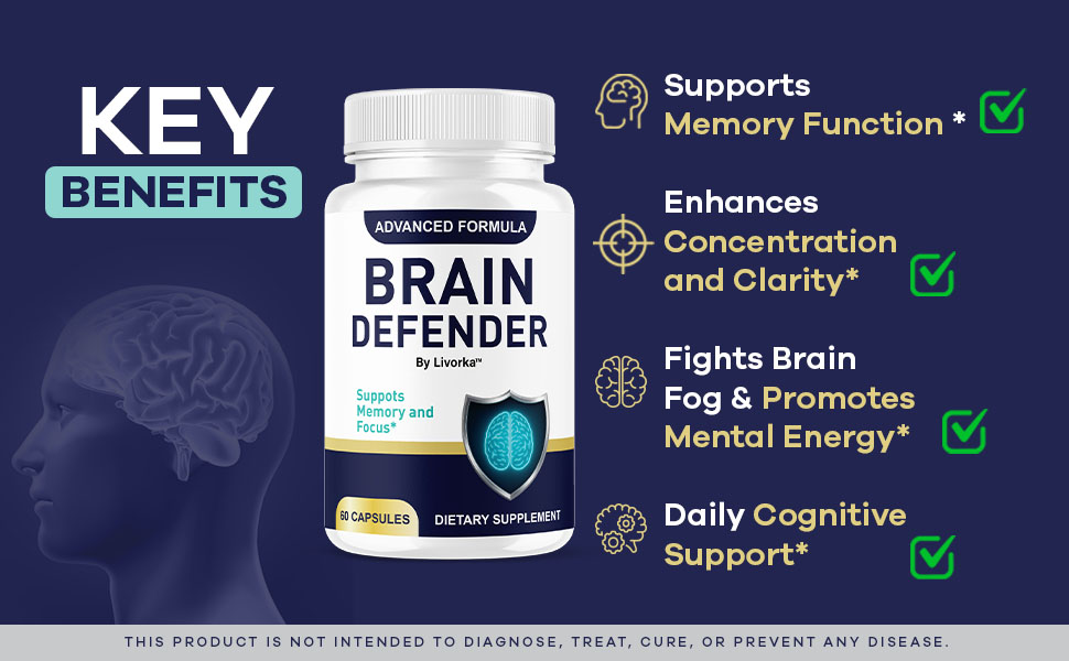 - تم تصميم Defender Brain لدعم الوضوح العقلي والتركيز والذاكرة والعافية المعرفية الشاملة كمكمل لأسلوب الحياة الصحي.