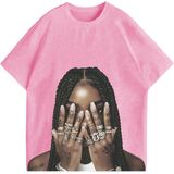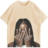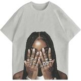 قميص بارد للنساء ، والأكمام القصيرة ، والرقبة المستديرة ، والكتف المسقط ، وطباعة الشكل ، وملاءمة فضفاضة ، وأظهر الساحرة الخاصة بك