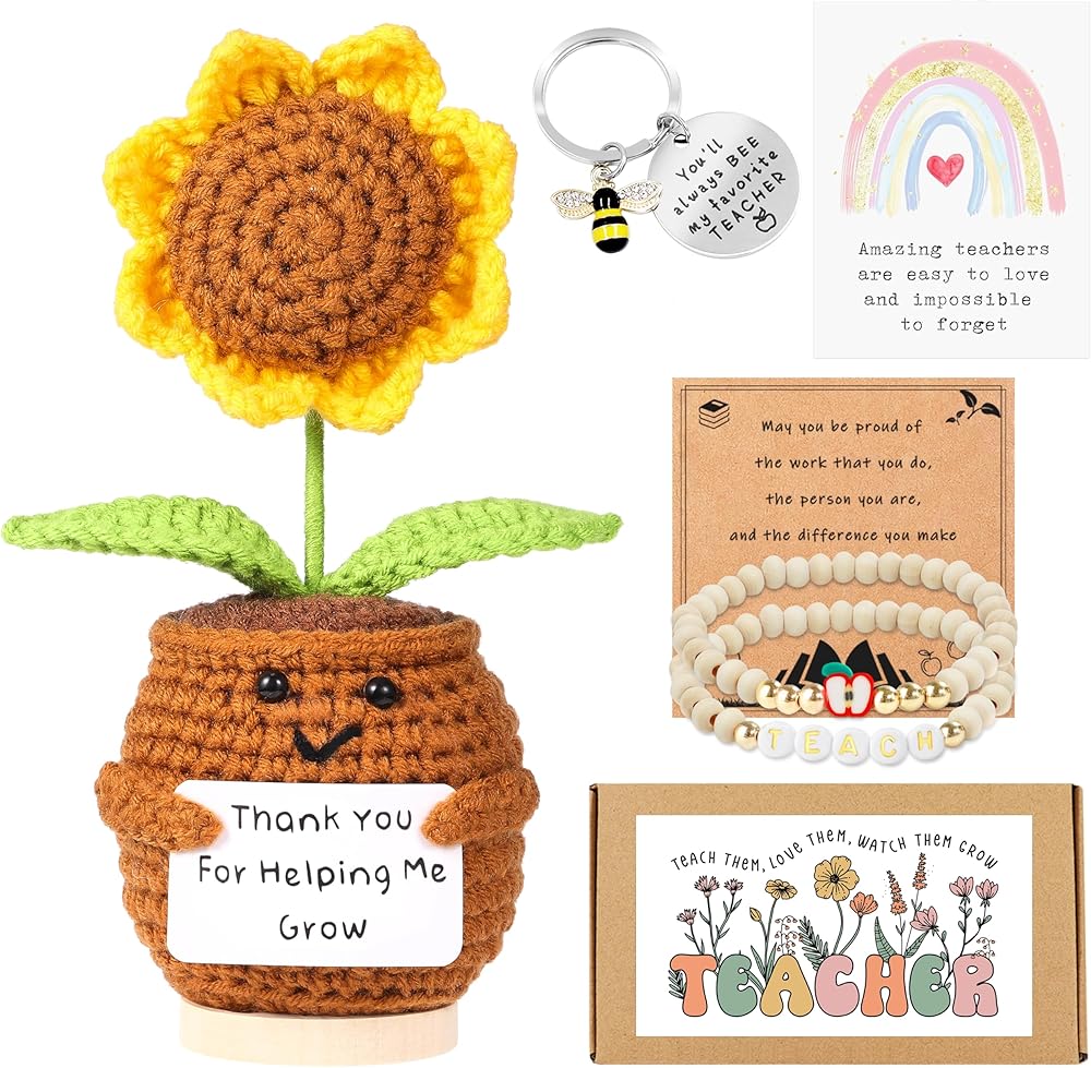هدايا تقدير المعلمين في Lamyba للنساء ، دمية كروشيه إيجابية عباد الشمس ، البطاقة الملهمة ، سلاسل المفاتيح ، صندوق الهدايا ، عيد الفصح/شكرًا لك على المعلم