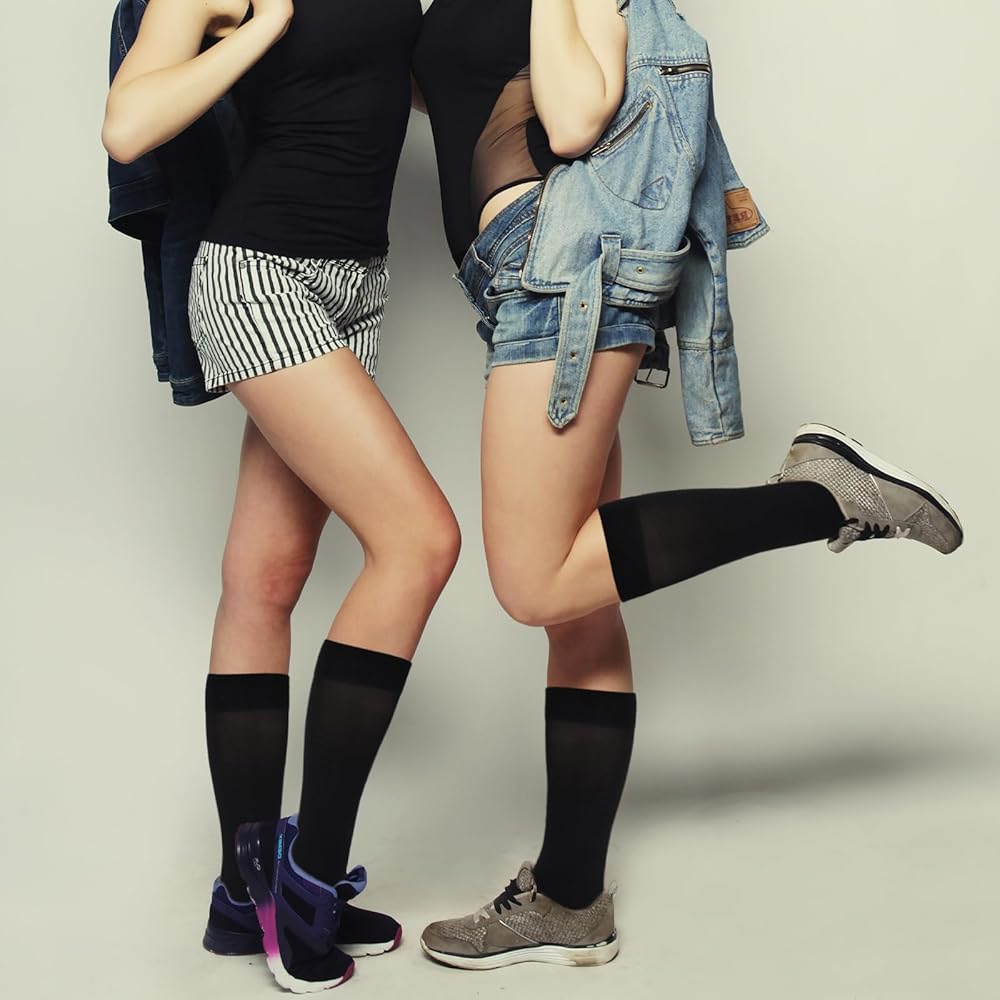 SILKY TOUCH: long black socks for girls are made of women's silky opaque stretch nylon lycra, which gives these calf socks a silky touch and extreme comfort. The silky fabric hugs the skin, leaving the wearer feeling softer and more comfortable than ever.