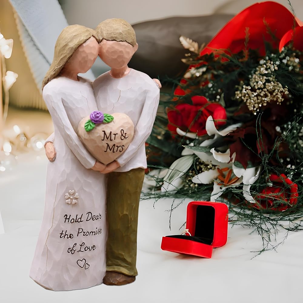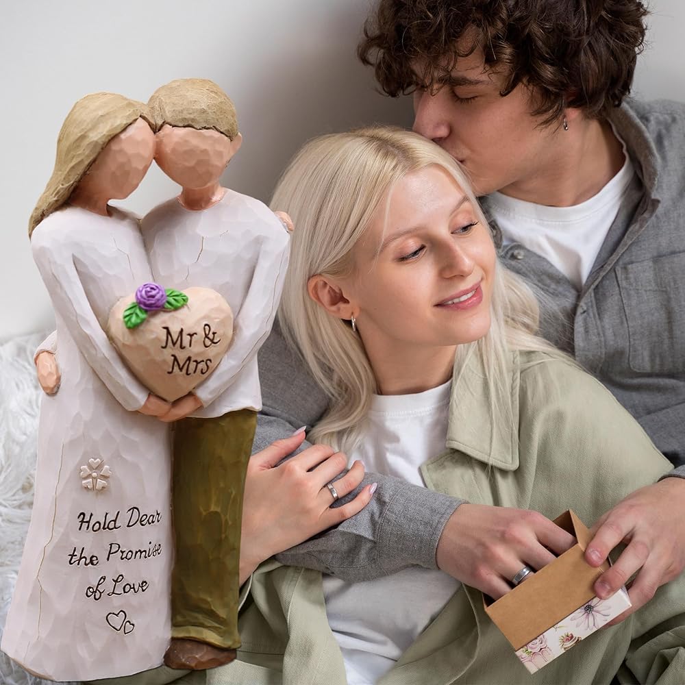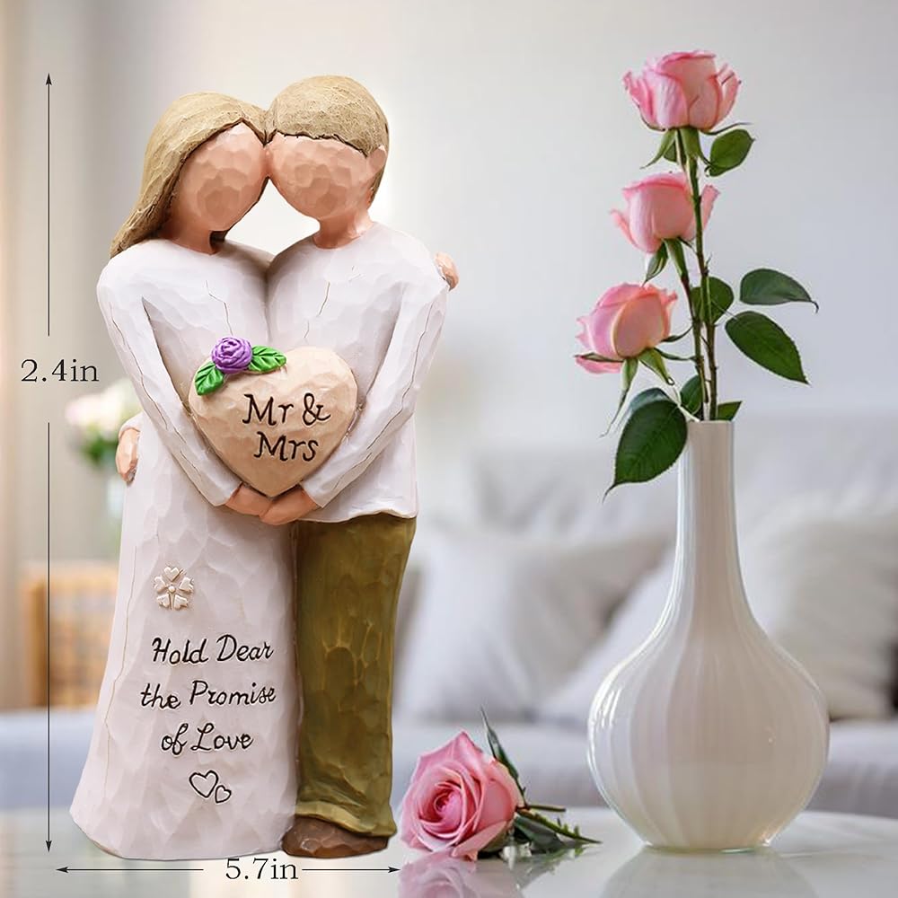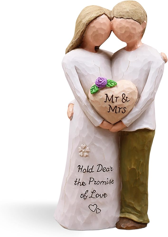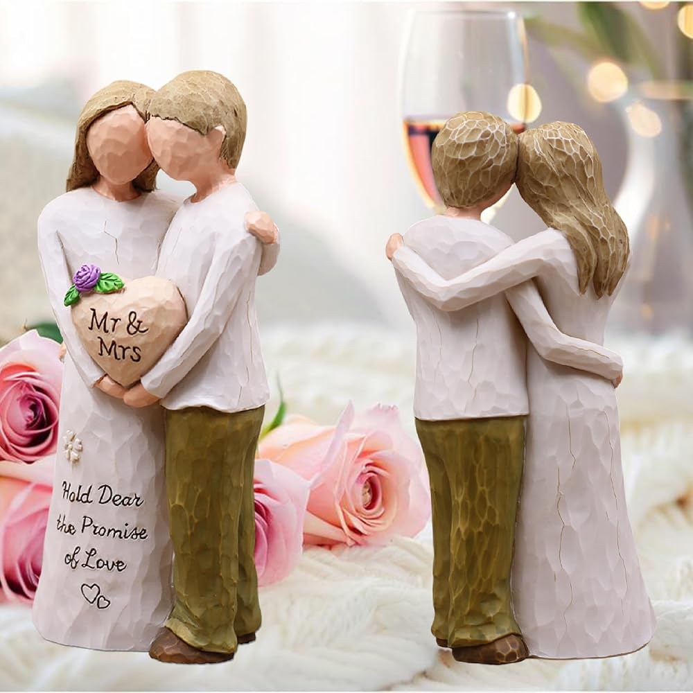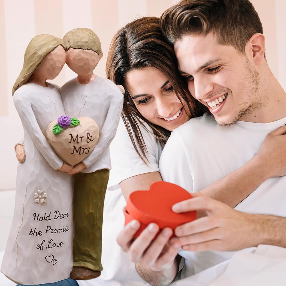 هدايا الزوجين: هذا النحت الراتنج المصنوع من الحرفيين يخلع احتضان الزوجين ، ويتميز بقلب محفور بحرف "MR & MRS" التقليدي ومزينة بردة حساسة. يحمل الفستان التعهد الشعري "تمسك بوعد الحب" ، مما يخلق رمز هدية ذكرى عميق