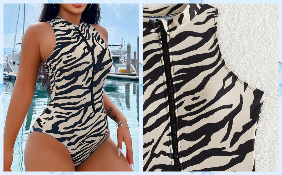 - الميزات: بلا أكمام ، متسابق ، zip up ، طباعة حمار وحشي ، رقبة عالية ، ملابس واحدة للسباحة ، ملابس سباحة ركوب الأمواج