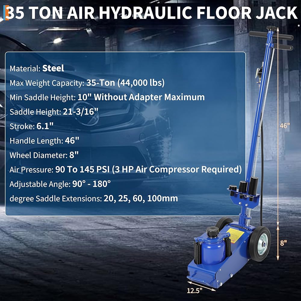 【Dual-Power System】Air + Hydraulic for Fast & Easy Lifting ✔ 3HP Air Compressor Compatible (90-145 PSI) – Lifts loads 50% faster with minimal effort. ✔ Manual Hydraulic Backup – No air? No problem! Dual-mode operation ensures reliability in any condition.