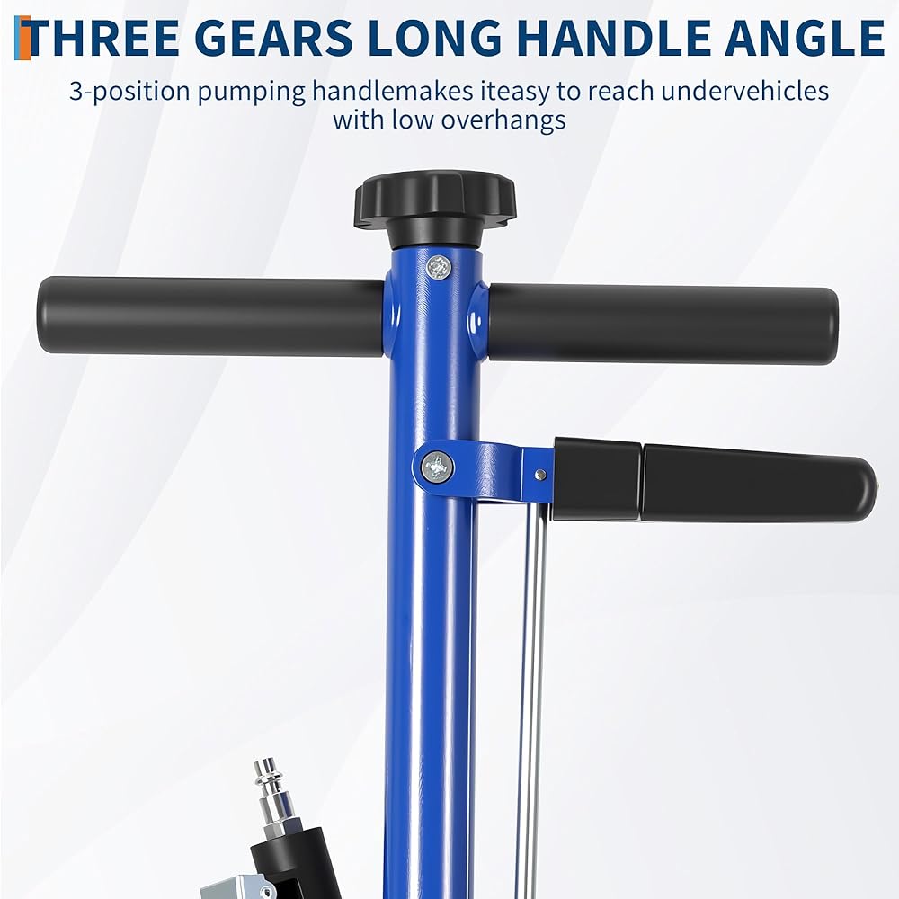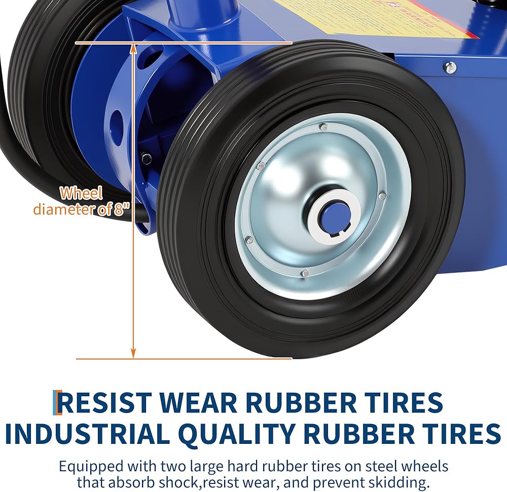 【Effortless Operation】Adjustable Handle & Smooth Mobility ✔ 46" Adjustable Handle – Pivots 90°-180° for tight-space access (e.g., garage, roadside). ✔ 8" Rubber Tires – Absorbs shock and won't skid like plastic wheels, even on rough workshop floors.
