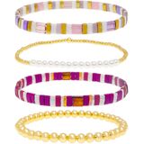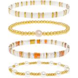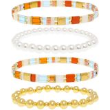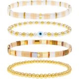 Miyuki Glass Gold Flat Gold White Bededed Bracelet ، يتميز بنمط أزياء أنيق فريد من نوعه مع حبات Tila الملونة المذهلة ، مناسبة لإظهار سحرك في جميع المناسبات.
