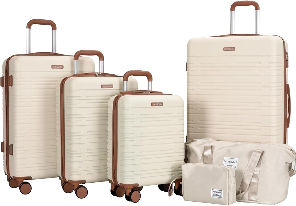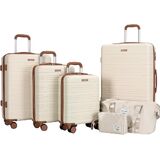 مجموعة أمتعة تريبكومب المكونة من 6 قطع تحمل على حقيبة سفر صلبة من ABS مع عجلات دوارة وقفل TSA، 22x14x9 معتمدة من شركة الطيران (16/20/24/28)، بيج