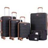 مجموعات الأمتعة 5 قطع حقيبة قابلة للتوسيع قابلة للتوسيع مع عجلات الدوران ، مجموعة أمتعة سفر خفيفة الوزن مع قفل TSA (21/25/29 ، الأسود in Kuwait