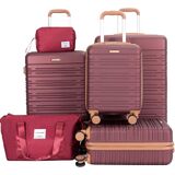 • 【Expandable Luggage Sets】This 5 piece luggage set is made from PC material, which make the luggage stronger and more durable, features textured finish to prevent against scratches. 21-inch is suitable for carry-on, 25/29-inch come with expandable function, which can expand 20% of the additional space. And a toiletry bag, a duffel bag equipped with multiple functional pockets to meet different travel needs.