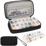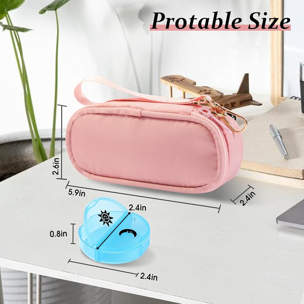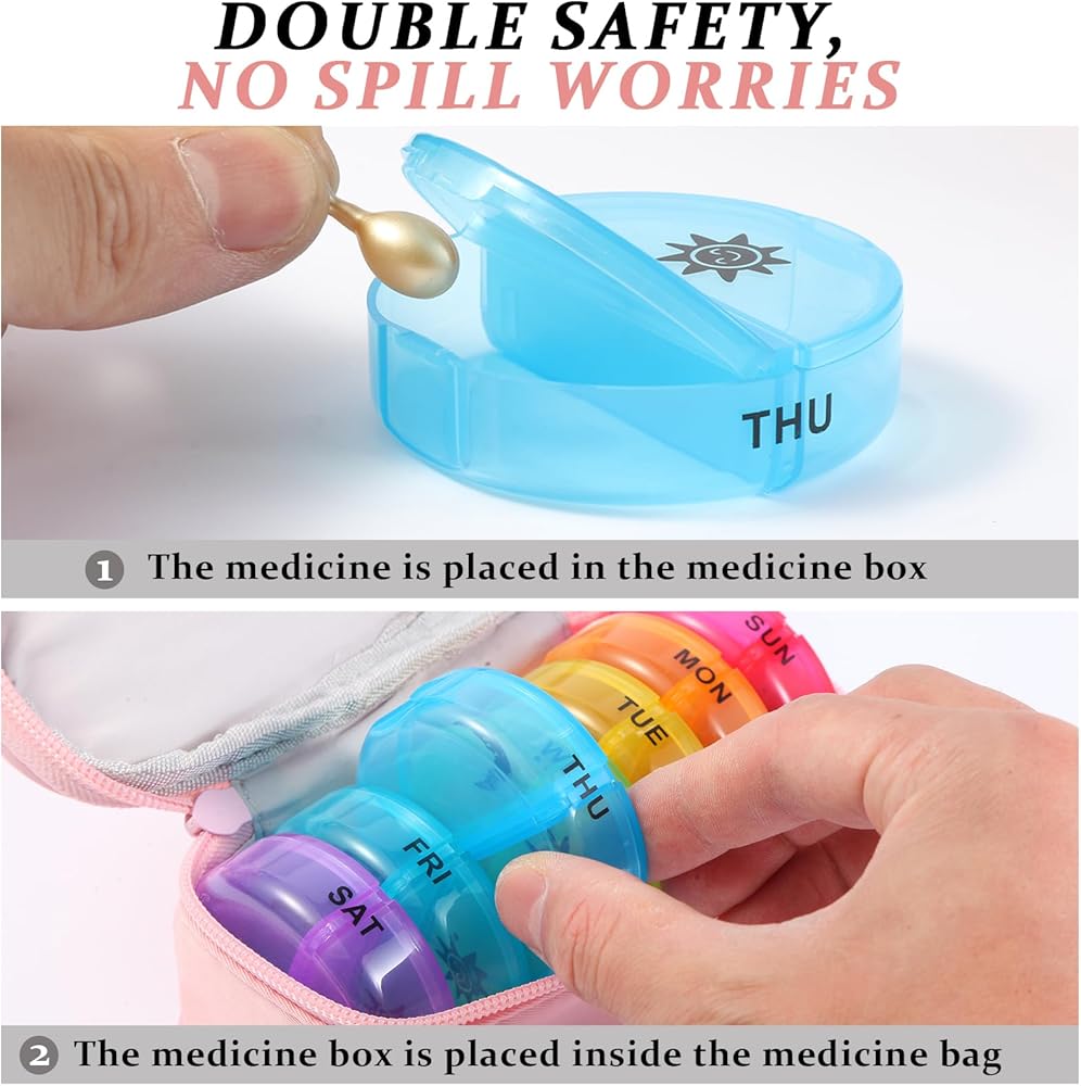 تصميم الحماية المزدوجة: يشتمل منظم أدوية السفر على 7 حاوية حبوب منع الحمل بلاستيكية وحقيبة سحاب متينة مع مقبض محمول للحماية المزدوجة ، ومنع حبوب منع الحمل الخاصة بك بشكل فعال