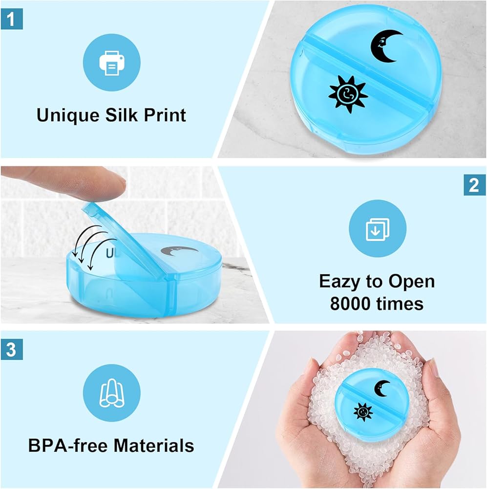 جودة عالية: صندوق الطب 7 أيام خالي من BPA ، مما يضمن سلامة الدواء. يستخدم حبرًا عالي الجودة لطباعة النمط للتأكد من أنه لن يتم محوه بسهولة.