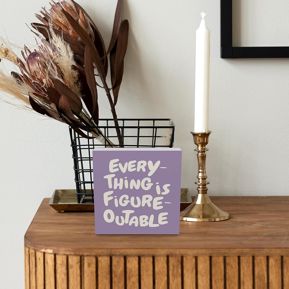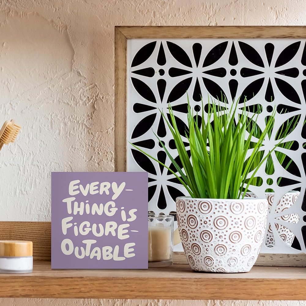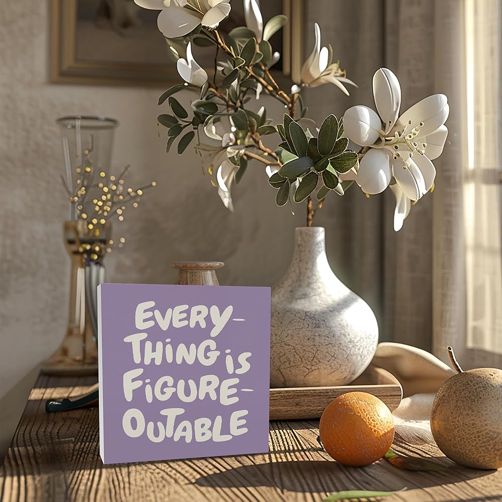 ديكور المكتب الأرجواني الملهم ، كل شيء هو إكسسوارات مكتب تحفيزية قابلة للتحفيز علامة خشبية ، هدايا ملهمة للنساء ، جدار الجدار الجدر