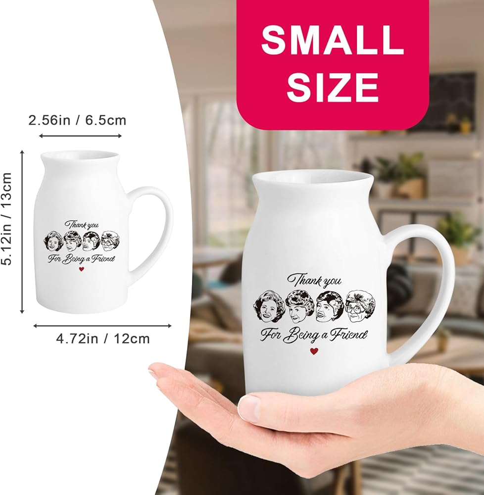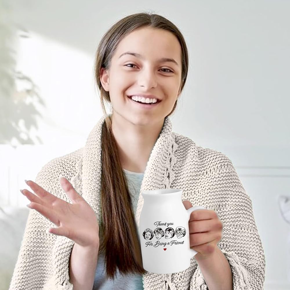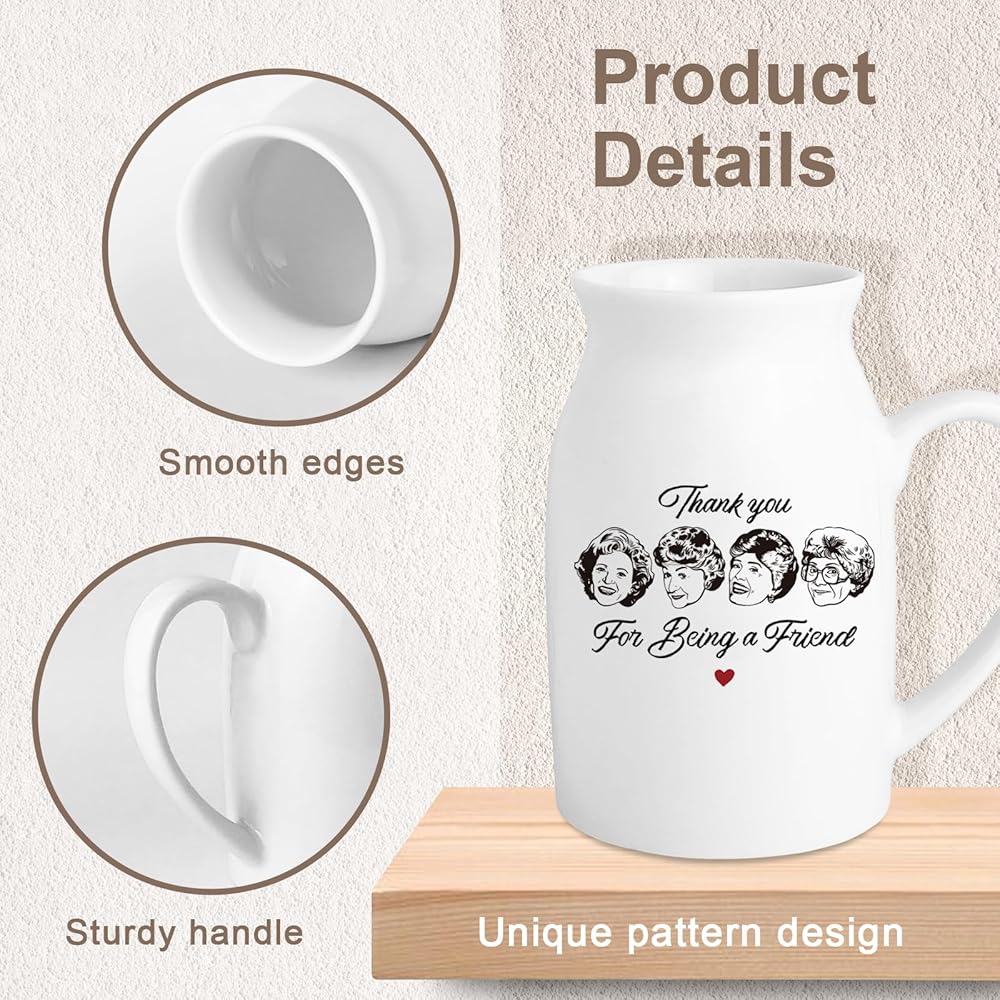 Golden Girls Meashandise ، Home Friend Gift for Women ، White Ceramic Flower Vase ، Friendship Thank You Gift for Women Best Friend Sisters ، شكرًا لك على كونك صديقًا (بدون نباتات)