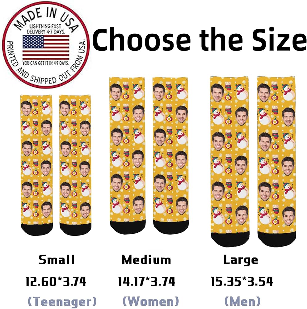 • Personalized Gift Idea: Show your loved ones how much you care by gifting them a pair of custom face socks. Imagine the joy on their faces when they unwrap a personalized gift that's as unique as they are! Our socks make ideal souvenirs for various occasions, including Christmas,Fa Valentine's Day, Mother's Day, Father's day or any anniversary celebration.