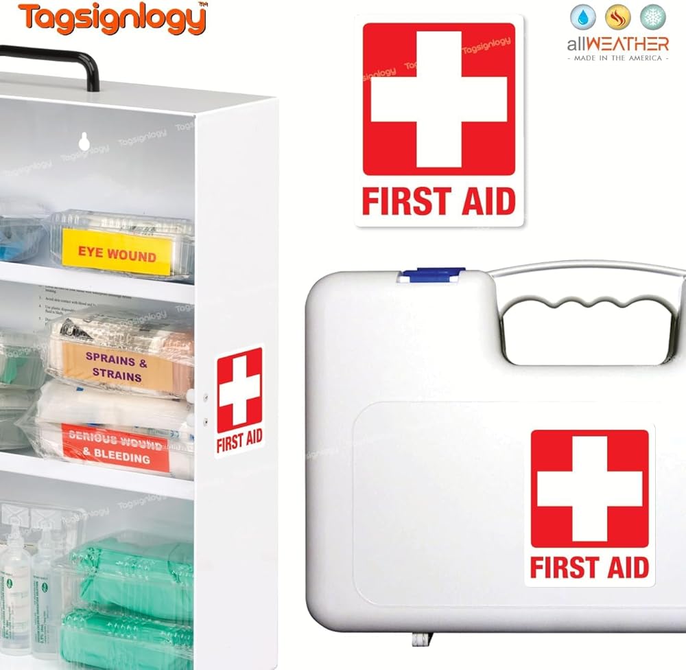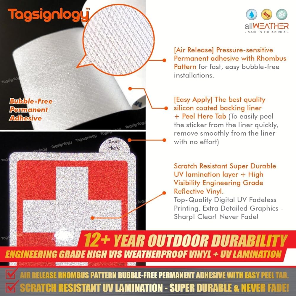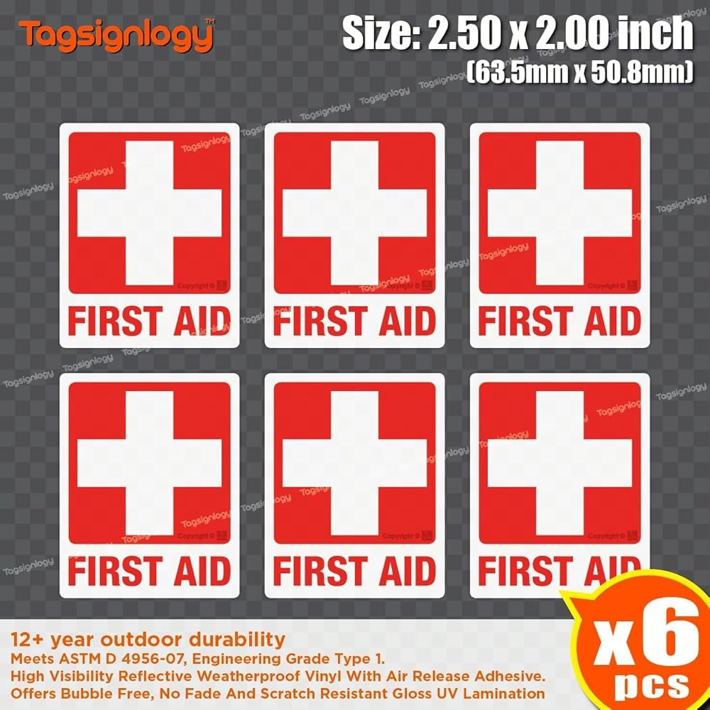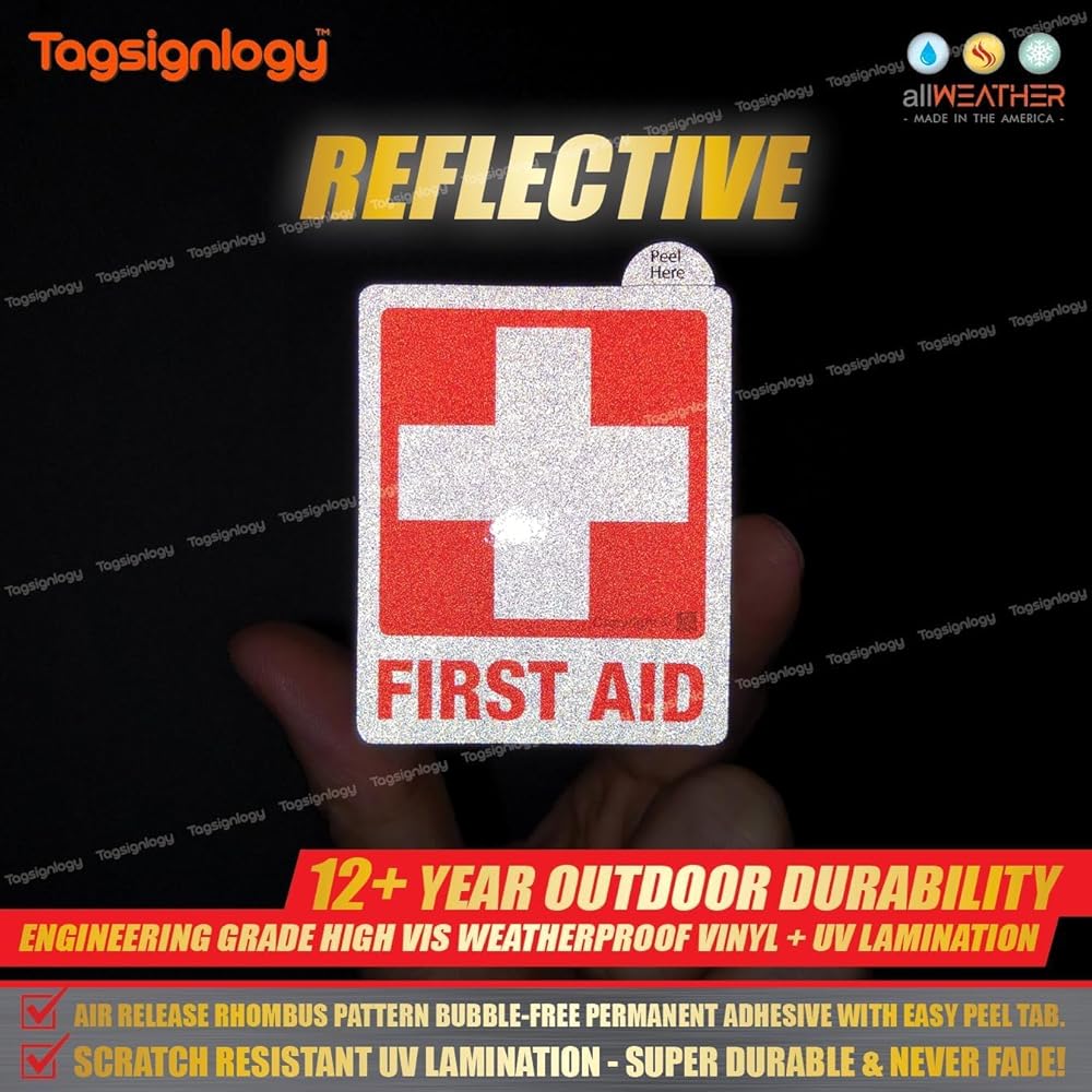 [عاكس] الإسعافات الأولية للأشعة فوق البنفسجية ملصقات الفينيل المقاومة للطقس (6 أجهزة كمبيوتر) (2.50 × 2.00 بوصة) درجة عالية من مهندس الرؤية [ضمان مقاوم للبلاغ لمدة 12 عامًا] علامة سلامة مربع الطبية