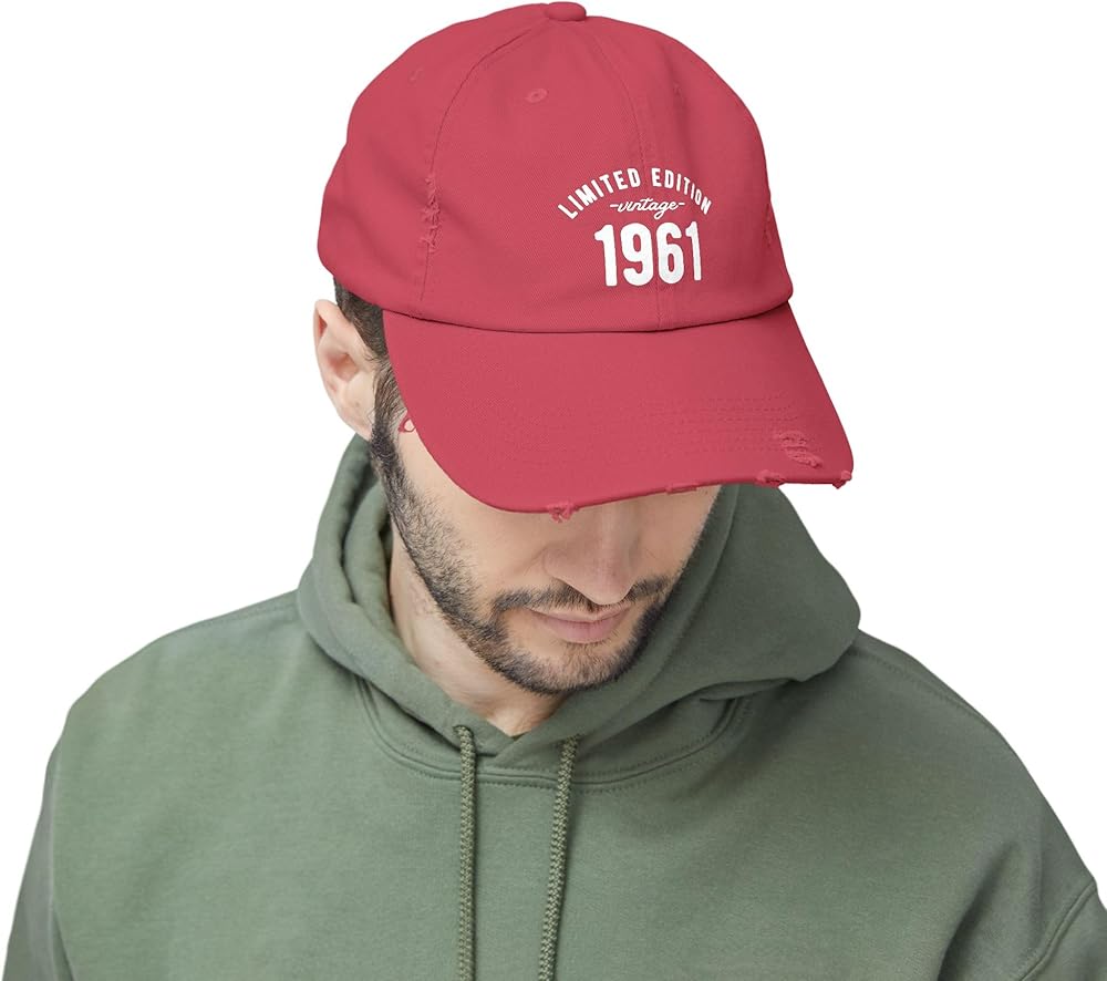 Step into timeless style with this Limited Edition Vintage 1961 Baseball Cap – a perfect blend of retro flair and everyday comfort. Made from 100% cotton twill and featuring a relaxed unstructured fit, this cap celebrates a classic birth year with a bold vintage design printed using premium DTF (Direct to Film) technology. Whether you're gifting a legend born in 1961 or treating yourself, this adjustable hat makes a stylish statement for birthdays, reunions, or casual weekends. Product features - 100% cotton twill for a vintage look - Comfortable fit for everyday wear - Unique distressed elements create character - 6-panel structure with eyelets for breathability - Self-fabric hideaway strap with metal D-ring slider Care instructions - Use warm water and dish soap and clean spots off your hat. It's not necessary to soak the whole item. For hard to clean spots use a soft bristled brush.