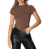 • ♥المميزات: طراز كاجوال وأساسي. كم قصير، لون ثابت، تي شيرت برقبة دائرية، تي شيرت برقبة دائرية صلبة. قميص قصير مثير للسيدات بأكمام قصيرة، قمصان نسائية بأكمام قصيرة، بلوزات كاجوال برقبة دائرية للخريف، قميص بأكمام قصيرة من الجرونج الخيالي.