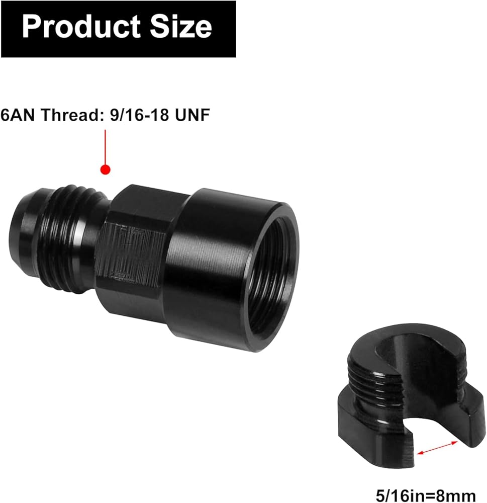 - [الحجم] 6AN ذكر إلى 5/16 أنثى وسريكات سريعة ؛ حجم الخيط 6an هو 9/16-18 UNF ؛ معرف المسمار هو 5/16 بوصة
