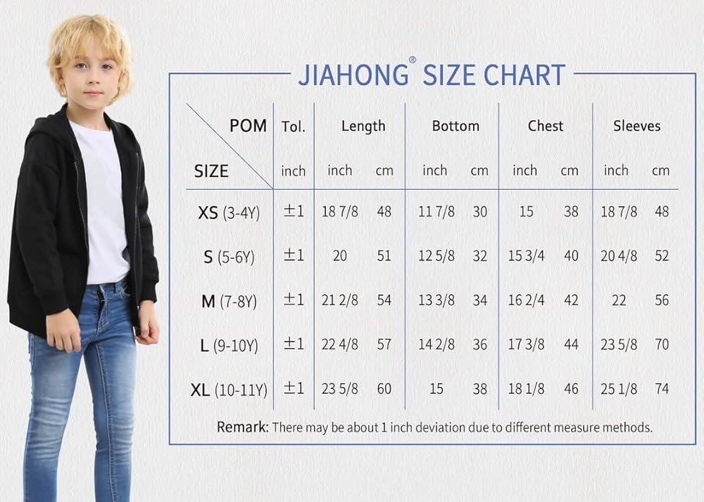 هذه السترات ذات القلنسوة ذات السحاب رائعة لممارسة الرياضة والأنشطة والسفر والمناسبات اليومية الأخرى في الربيع والخريف والشتاء. يعتمد مخطط مقاسات JIAHONG (العمر 3-12) والملاءمة على المعايير الأمريكية. على الرغم من أن المقاس مطابق للحجم، يرجى الرجوع إلى جدول المقاسات واختيار المقاس المناسب وفقًا لطول الأطفال أو وزنهم.