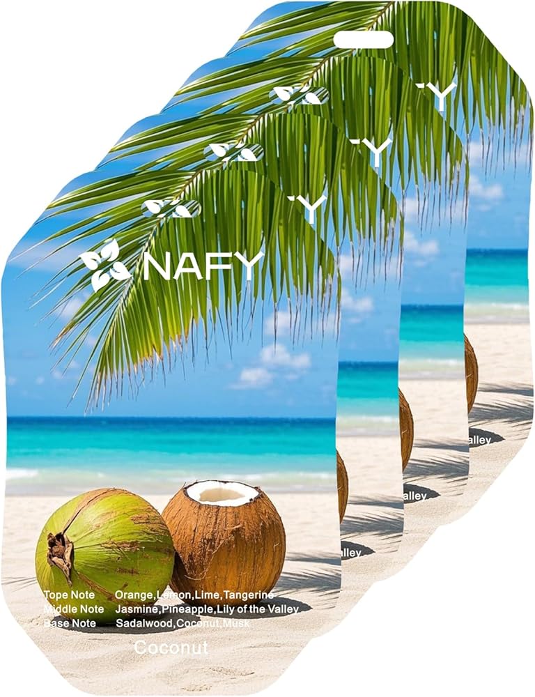 4-Pack of NAFY Air Fresheners. Bring the smell into your car, office or home with NAFY Air Fresheners. Warning: Avoid contact with all auto interior surfaces. Upholstery, dashboard, and all other plastic or painted surfaces will be damaged from any contact with this air freshener. Hang only where driver's vision is unobstructed. Keep away from children and pets, Avoid accidental ingestion. Please note that a pregnant woman is not recommended to use this product. We also suggest that a pregnant woman do not use any air freshener products, because pregnant women are very sensitive to scents and in case certain fragrances may be harmful to your baby.