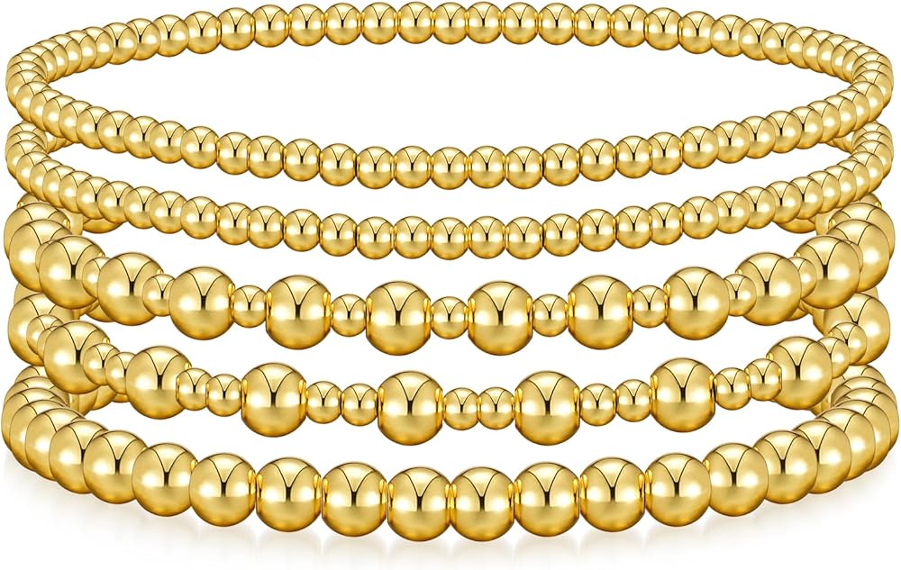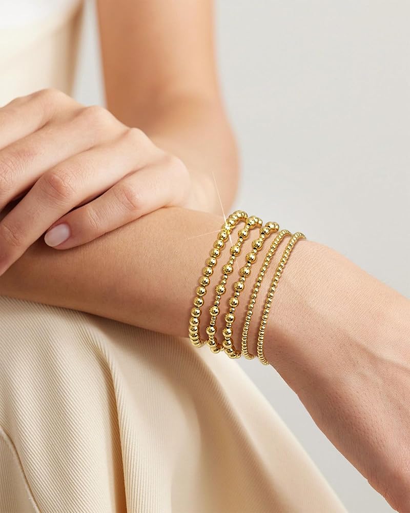 أساور ذهبية للنساء سوار الذهب مكدس الأساور الذهبية للسيدات للنساء 14K مطلي بالذهب سوار الكرة حبة مجموعات المجوهرات لهدايا عيد ميلاد عيد الميلاد
