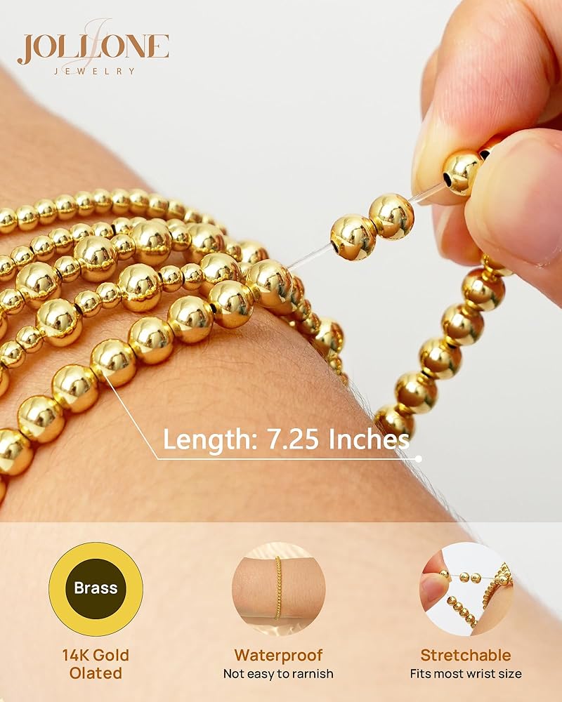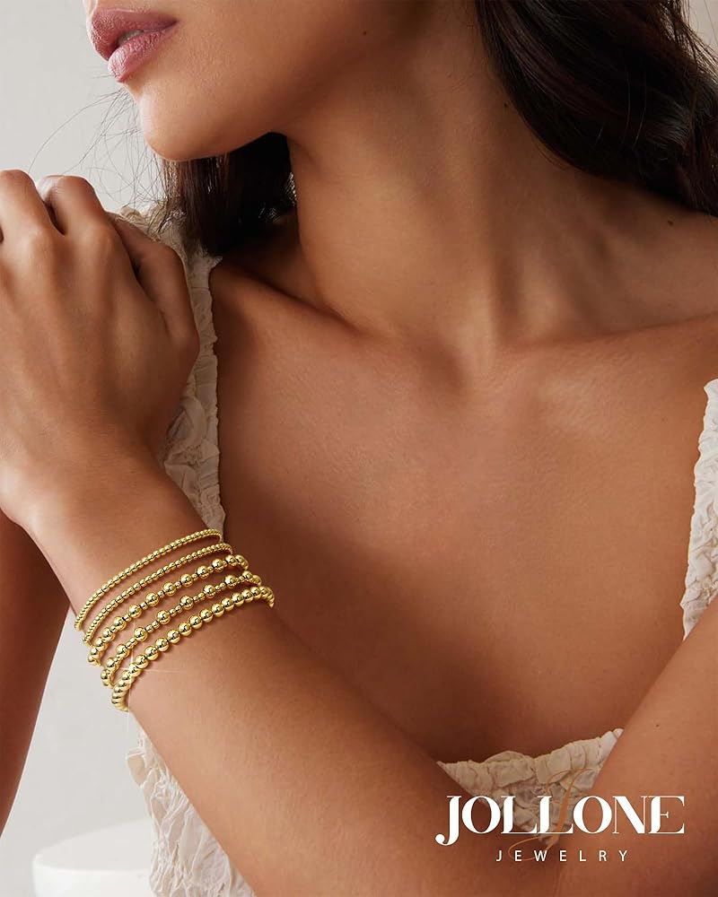 • الأساور الذهبية المذهلة العصرية: أساور Jollone تمتد بالخرز تأتي مع حقيبة العلامة التجارية الجميلة وتأتي أيضًا بقطعة قماش تنظيف ناعمة. إنها هدية مثالية للنساء والرجال والأخت والأصدقاء وأمي وشخص مميز أو نفسك في عيد الأم ، وعيد الحب ، عيد ميلاد ، زفاف ، المشاركة ، عيد الميلاد وعيد الشكر.