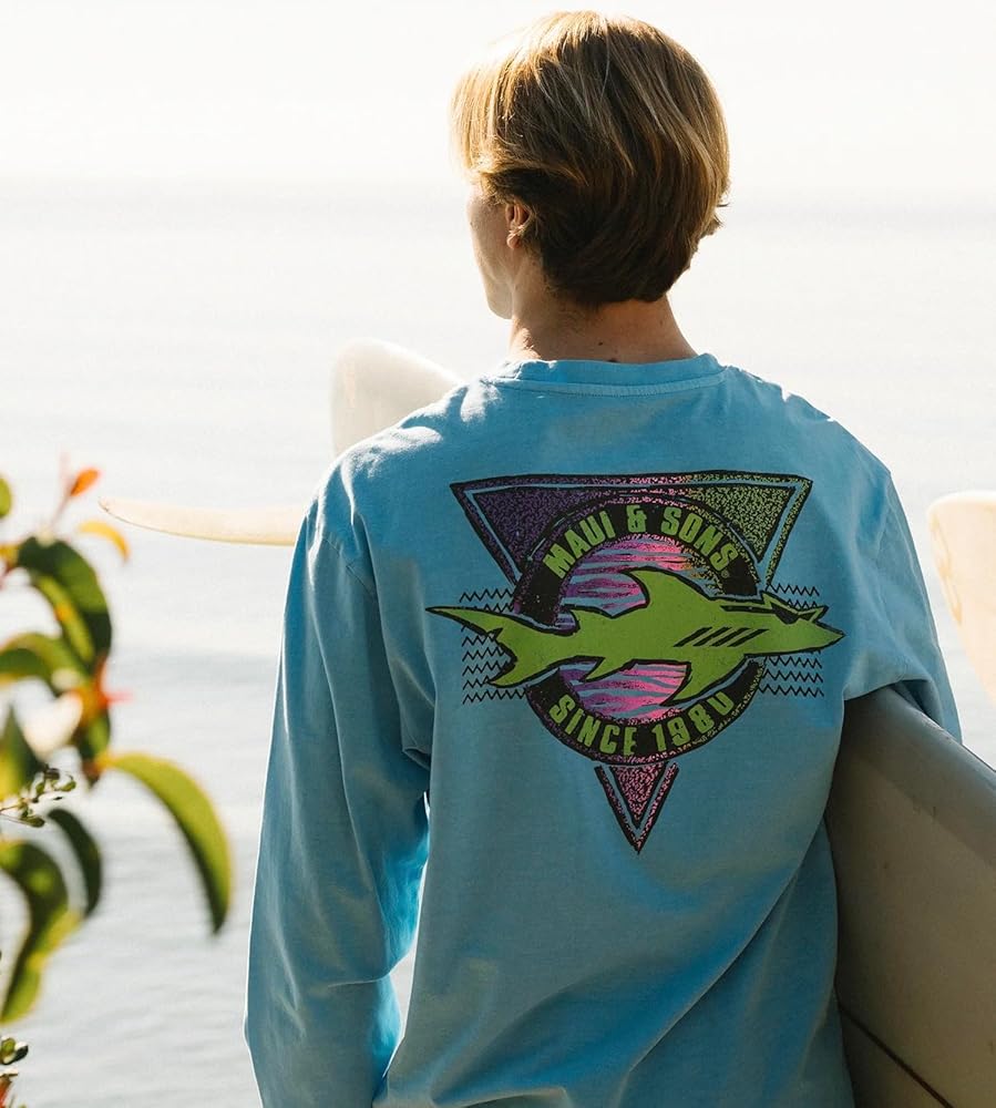 - طاقم طويل الأكمام تي شيرت مع رسم بياني في الأمام والخلف