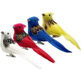 4pcs الطيور الاصطناعية الريش الطيور الزخرفية مع مقاطع لزخارف الزهور الزخارف الزخارف هدايا عيد ميلاد لمحبي الطيور (4 ألوان متنوعة باللونين الأحمر الأزرق الأبيض)