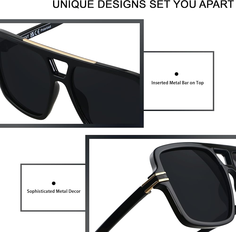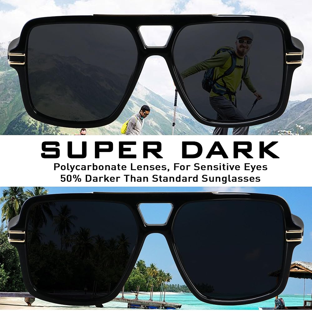 [العدسات المستقطبة] نظارات شمسية كبيرة إضافية تستخدم الرجال العدسة عالية الجودة 1.1 ملم TAC مع كتل طلاء واقية UV400 ضارة بنسبة 100 ٪ UVA و UVB و UVC ، يلغي الوهج والضوء المنعكس ، وضمان دفاع UV الموثوق لعينيك.