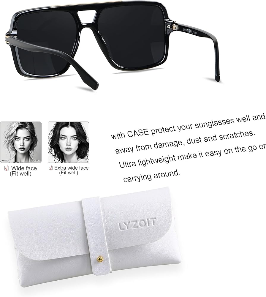 الجودة العالية - Lyzoit Big Square Aviators تستخدم المواد البلاستيكية الخفيفة الوزن ، والسرد مع مراحل معدنية مملئة متطورة تربط المعابد ، وبار معدني مدرج أعلى الإطار الأمامي ، واحتضان الأناقة المريحة وخفيفة الوزن من هذه الشمس الكبيرة المربعة.