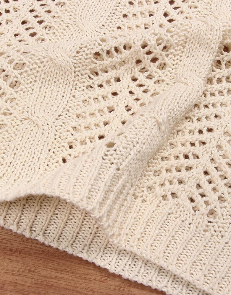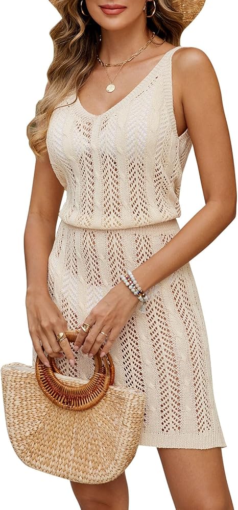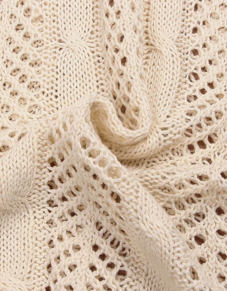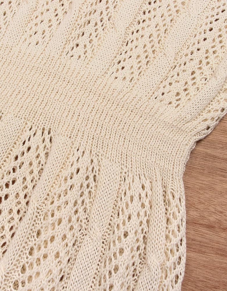 • Womens Hollow Out Swimsuit Cover الميزات: Hollow Out Crochet ، V الرقبة ، غلاف الغطاء ، شق جانبي وتصميم ربط الخصر.