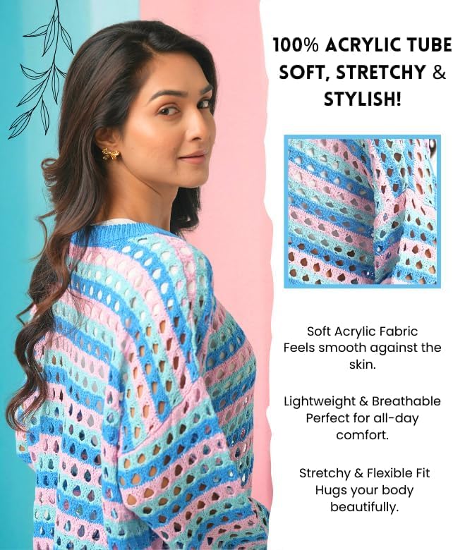 تصميم فريد: مزيج جميل من السماء الأزرق والوردي الباستيل والفيروز الخفيف يمنح هذه البلوتينات الشبكية للنساء مظهرًا أنيقًا. إنه يتميز بتصميم مخطط مفتوح ومصنوع من نسيج أكريليك ناعم وخفيف الوزن. تضيف رقبة الطاقم والأكمام الكاملة من هذه السترة الشبكية الراحة ، مما يجعل هذه السترة المتماسكة المفتوحة مثالية للبقاء مريحًا وعصريًا أثناء التنقل.