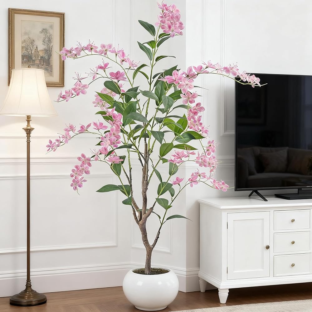 tree شجرة الياسمين الرمائية】 أشجار مزيفة متكاملة مع فروع كاملة ، ونباتات فو ، مثالية لغرفة المعيشة ديكور المنزل ، ديكور المزرعة ، وزيادة ديكور المكتب مع الأناقة السهلة الجهد