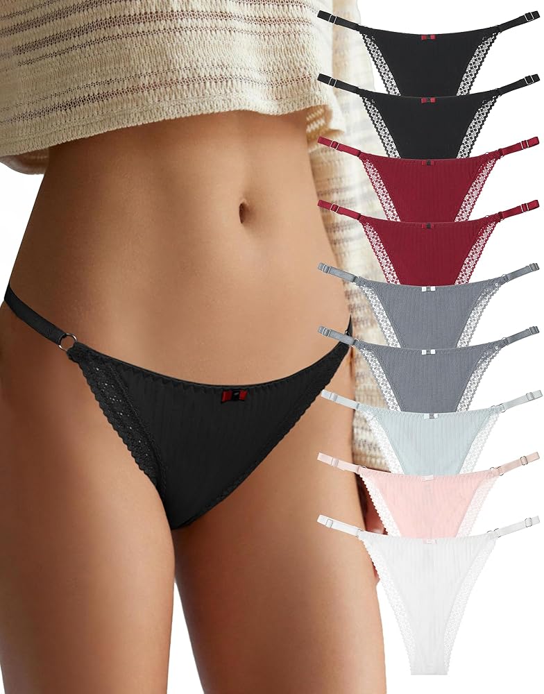 💗[خصر منخفض] ملابس داخلية قطنية على شكل حرف T ممزوجة بعناصر دانتيل رائعة، وترتدي مظهرًا شبابيًا وبناتي، وتصميم الخصر المنخفض مناسب لأي ملابس، مثل الجينز الضيق وسراويل اليوغا والسراويل الضيقة الرياضية والقمصان/الفساتين، أزياءك المثالية لارتدائها.