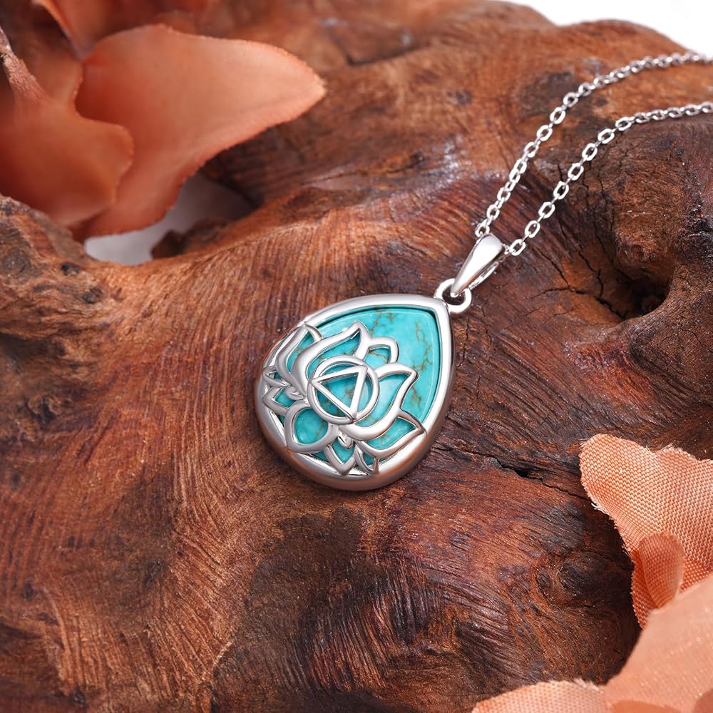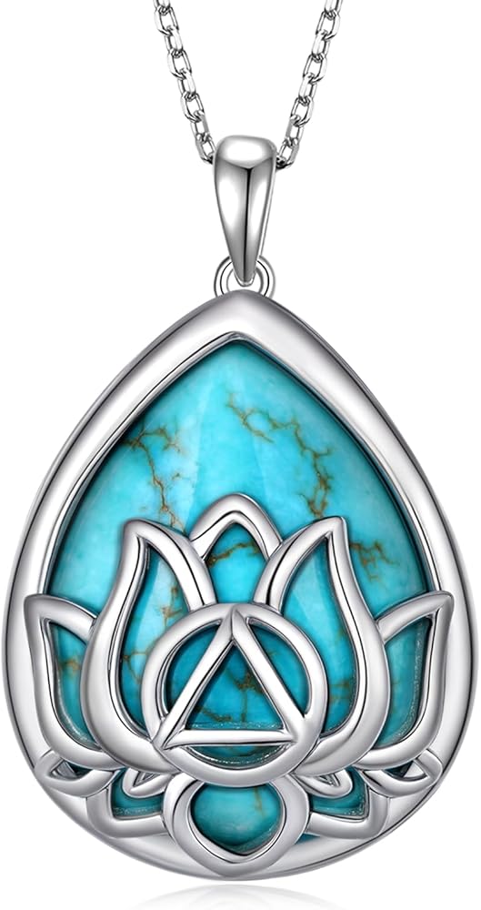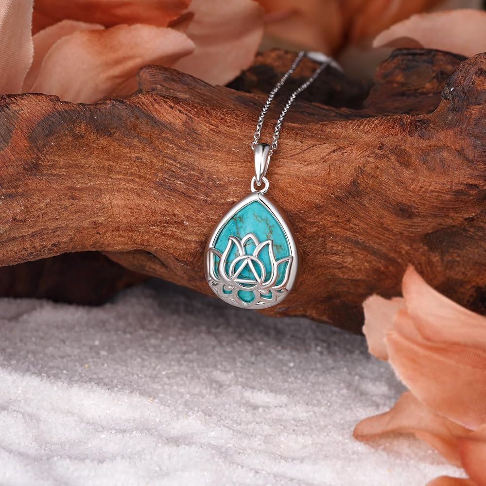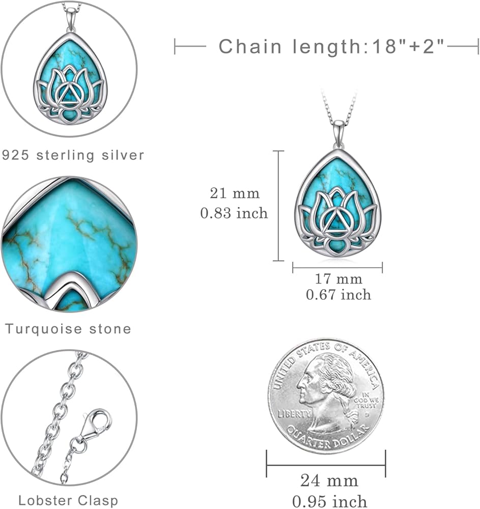 • Turquoise Pendant Necklace Material: Made from 925 sterling silver and natural turquoise, this lotus turquoise necklace is hypoallergenic, nickel-free, lead-free, and safe for sensitive skin. Its polished finish and calming energy make it perfect for both everyday wear and as a personal sobriety token.