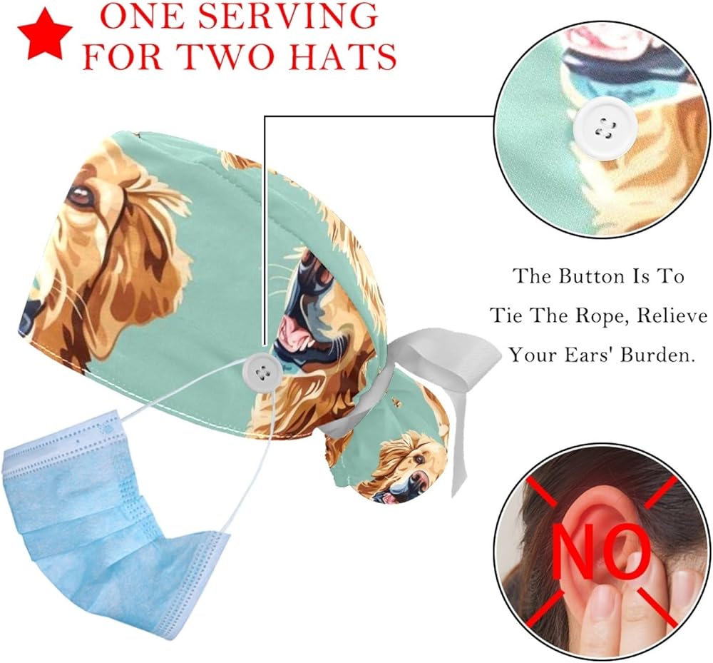 • Wide applications: these scrub caps with buttons ponytail holder and sweatbands have a variety of practical uses, suitable for work or beauty spa, fitness, chefs, facials, home protection, cooking, etc., giving you convenience and good decorative effect
