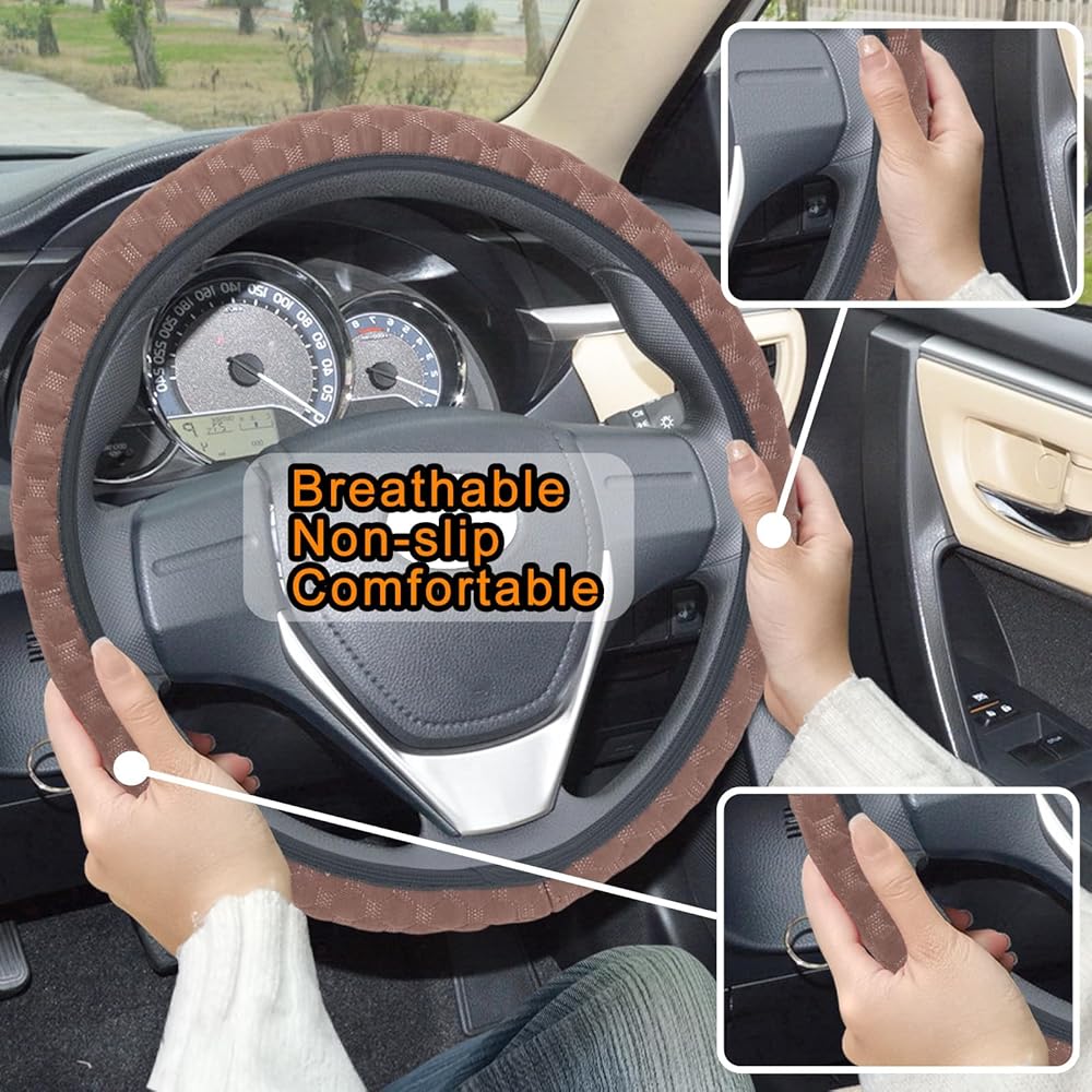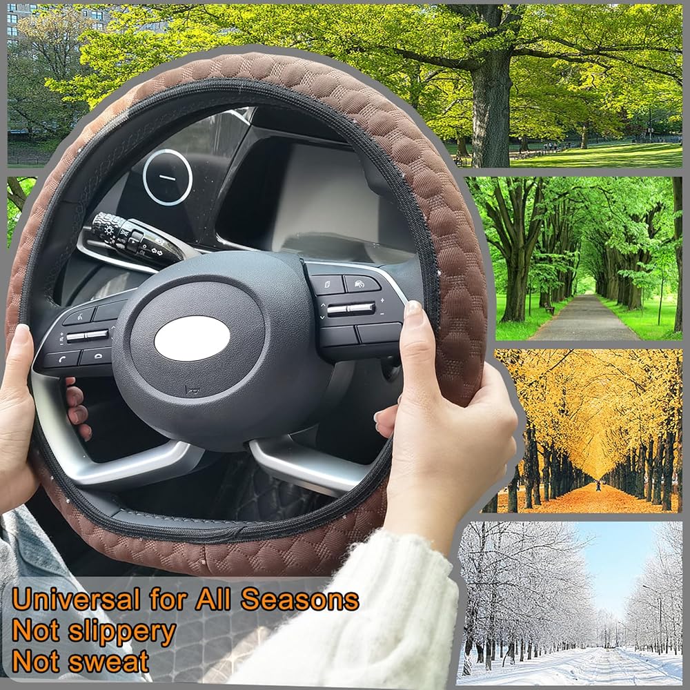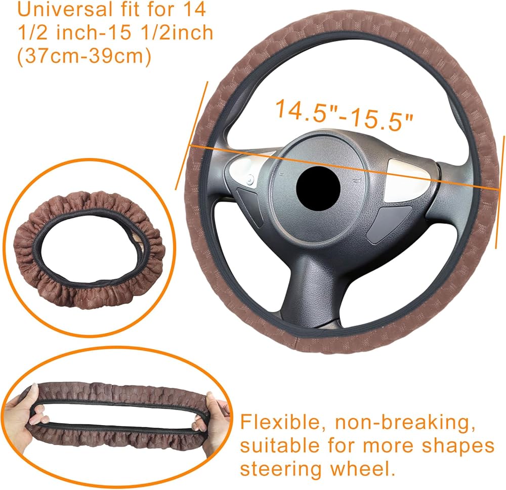 Universal Fit Perfectly: Excellent flexibility elasticity makes the steering wheel cover suitable for more car, large elastic force fits for more cars steering cover, Sedan, Pickup, Trucks, SUVs, and so on, protect your car steering wheel from against scratches, abrasions, fading, etc