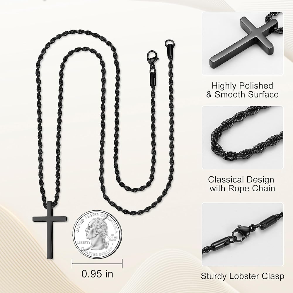 الحجم: طول سلسلة القلادة 18 بوصة. سلسلة حبل 2.5 ملم مع قلادة متقاطعة. التصميم البسيط والكلاسيكي والطول والحجم المثاليين ، اجعل هذه القلادة المتقاطعة أكثر تطابق أسلوبك. تصميم مشبك جراد البحر يجعل رابط القلادة المتقاطعة أقوى. اختر الحجم الذي يناسبك ، ستكون قلادة السلاسل المتقاطعة هي مجوهراتك اللطيفة