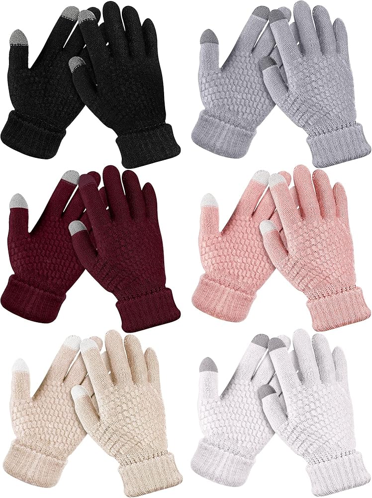 كمية العبوة: يوجد 6 أزواج من القفازات الشتوية المحبوكة التي تعمل باللمس وهي متوفرة بألوان مختلفة، والكمية الكافية واختيارات الألوان الغنية يمكن أن تلبي احتياجاتك المختلفة في الارتداء والمطابقة