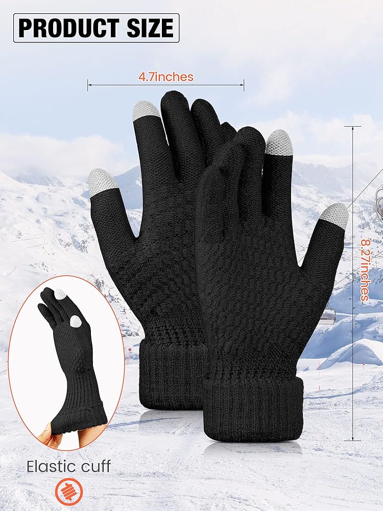 مقاس عالمي: قفازات شاشة اللمس النسائية المبطنة بالصوف يبلغ مقاسها تقريبًا. طول 8.75 سم وعرض 10.16 سم، الحجم المناسب والمرونة اللطيفة يجعلها مناسبة لمعظم النساء والفتيات المراهقات، مما يوفر ملاءمة مريحة وتنزلق من يديك بسهولة.