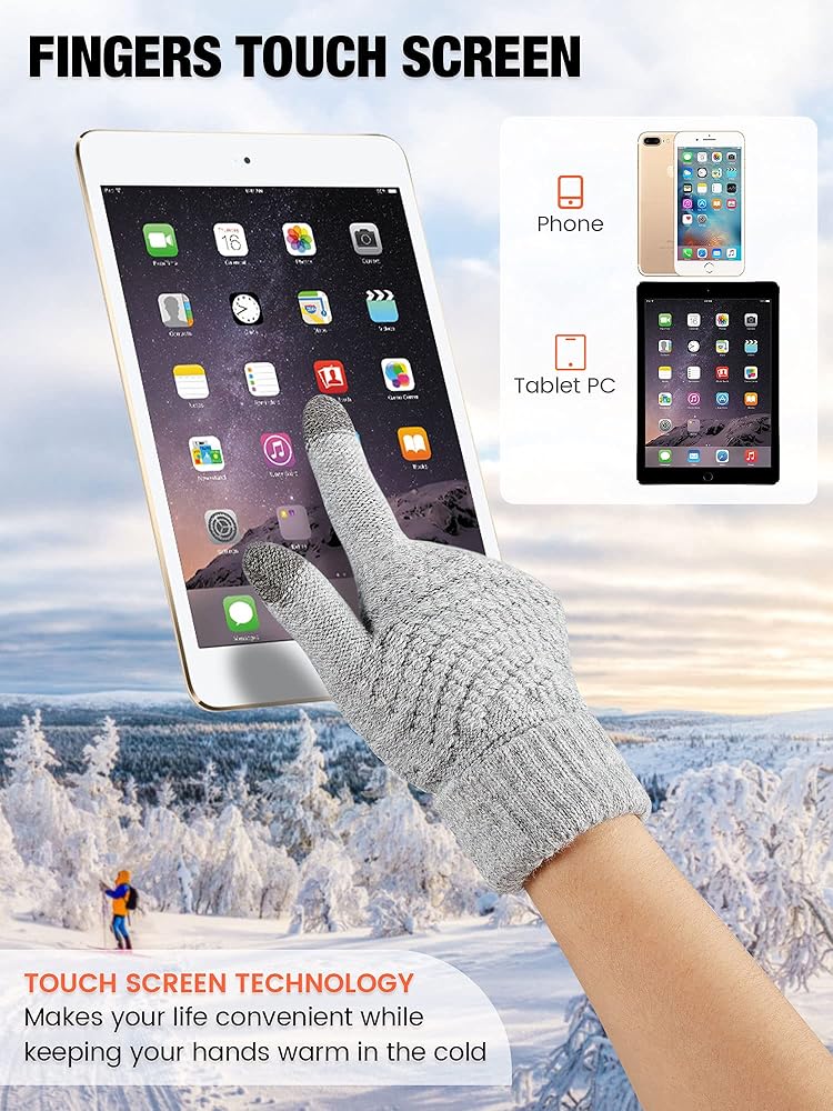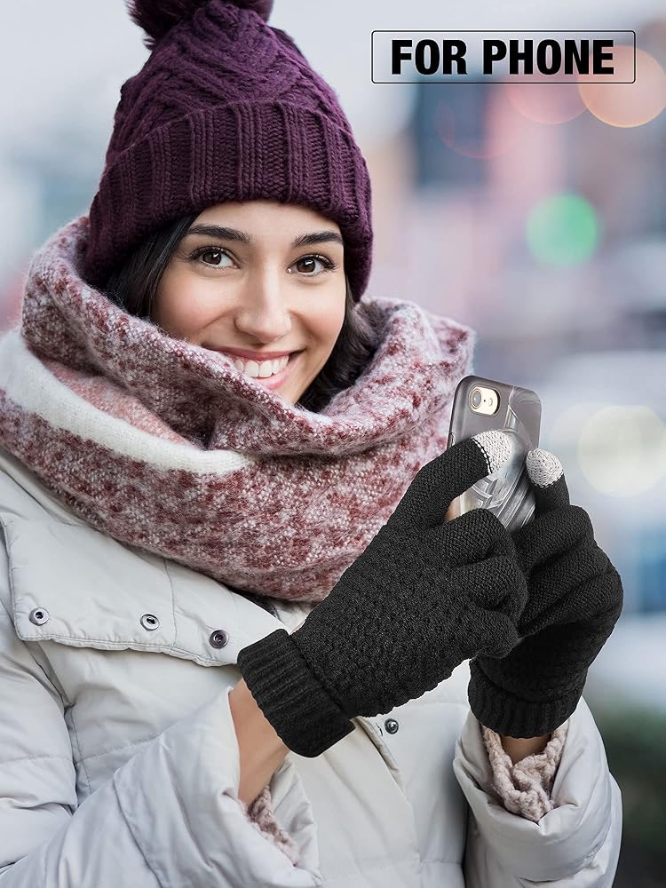 تصميم عملي: تم تصميم قفازات الشتاء النسائية من أقمشة موصلة على أطراف أصابع الإبهام والسبابة، مما يسمح بتشغيل هاتفك الذكي والأجهزة اللوحية والساعات الذكية وغيرها من الأجهزة التي تعمل باللمس دون خلع قفازاتك
