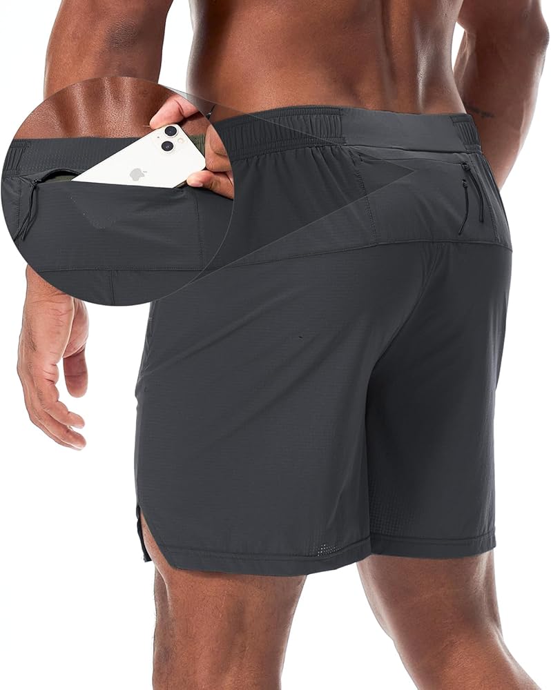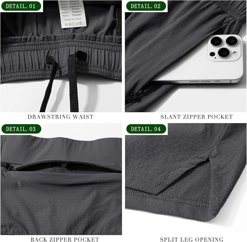 سحاب متعددة الجيوب: تحتوي شورتات الجري الرياضية على العديد من الجيوب ، وجيوب سحاب مزدوجة الجانب ، وتصميم جيب فريد في الخلف لمزيد من الأمان.