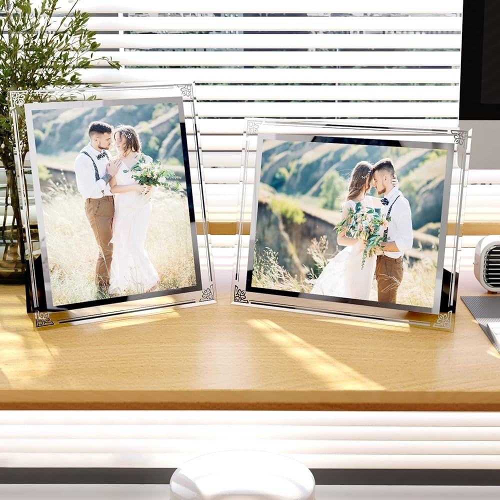 مجموعة إطار الصورة Horlimer 8x10 من 2 ، إطار الصورة الزجاجية 8 × 10 على الطاولة ، أفقيًا أو رأسيًا
